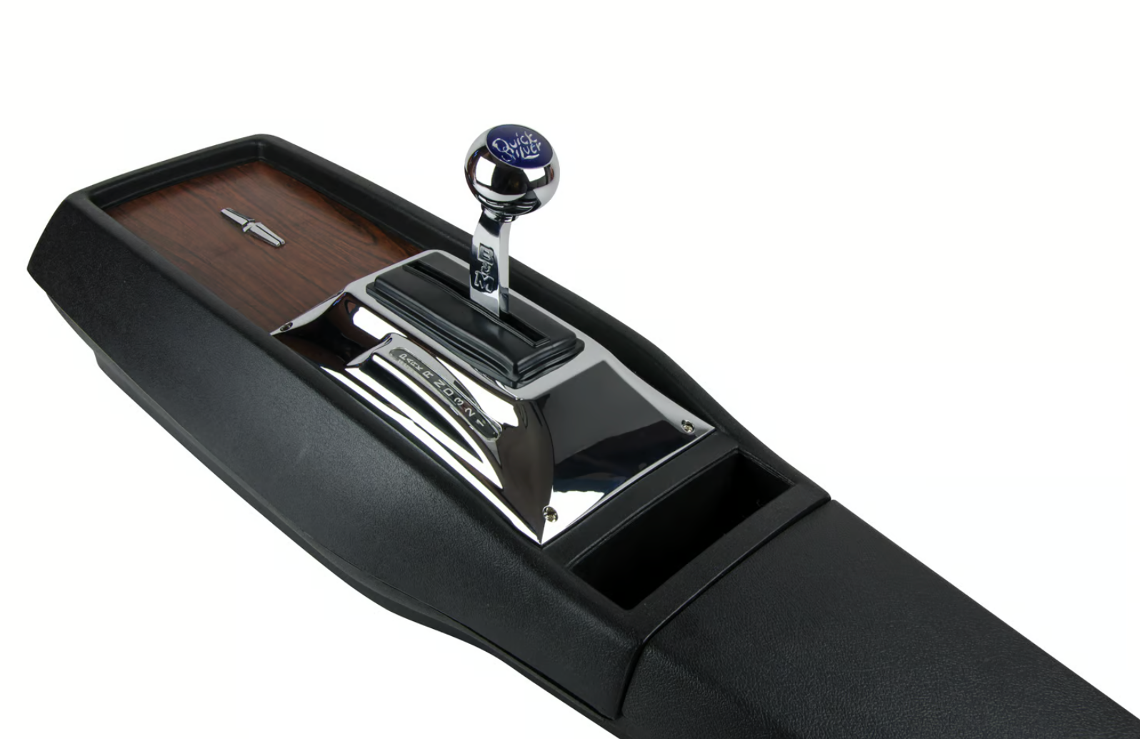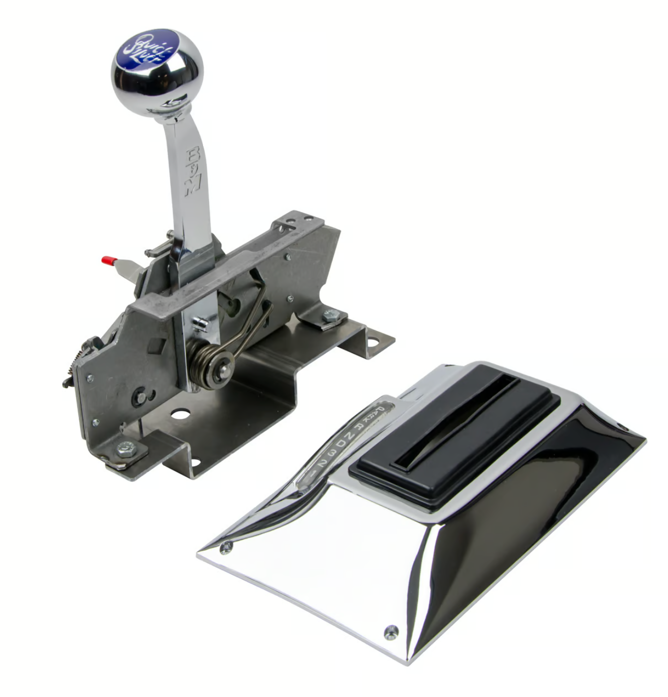 Easy to use, clean good looks and dependable ratcheting design makes the QuickSilver one of our most popular shifters. This console model is designed for a perfect fit in the factory console of your 1968-69 Camaro, and like all QuickSilver shifters, features a trigger-less shift handle design. When in Park you simply lift the handle and pull back and let the handle drop once in or past Reverse. Once out of Park, there's no need to lift the handle to shift gears until you either need to access Reverse or Park. From Drive, just lift the handle straight up and this will bypass the reverse lockout safety feature, then move the shift handle forward into Reverse or Park. It's just that easy! Also, the reverse lockout feature meets NHRA and IHRA safety regulations and won't allow you to accidentally over shift into reverse while making a pass at the strip. To use the ratcheting function at the strip, shift into low gear, launch the vehicle and hit the shifter forward when it's time to shift. You cannot over-shift and miss a gear. The chrome bezel, shift stick, and knob are all accented by the black "slit" style boot and deep blue medallion, giving your first-gen Camaro that classic muscle car style while providing fast and smooth ratchet shifting. The shifter includes a lighted gear position indicator in the bezel, a micro-switch for back-up lights and a neutral safety switch preventing accidental starts when in gear. Uses the factory shift cable and comes with all hardware, detailed instructions and everything needed for an easy installation you can do at home. Compatible with TH350, TH400, 700R4, 200R4, 4L60 transmissions right out of the box. Notes: 4L60E - 4L80E transmissions with PRNDL switch will require installation kit #75498 (without PRNDL switch use #35498) and 5-ft shift cable #80605.