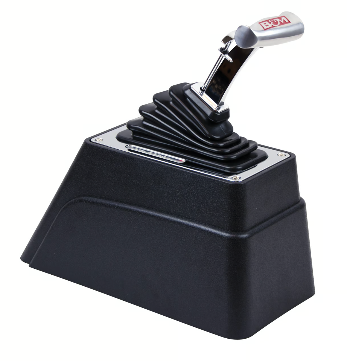 The B&M MegaShifter has it all, form, function and classic style. This all adds up to bring you a quality shifter that's been one of the most popular automatic shifters of all time. The light truck MegaShifter is better suited for truck and bench seat applications with its overall height of 14.85-inches tall (2.25-inches taller than #80690 MegaShifter.) The positive ratcheting action won't allow you to over-shift and miss a gear at that critical moment, along with the reverse lockout feature meets NHRA/IHRA safety rules for those weekend grudge races at the track, while the look and feel of the T-handle and accordion style shift boot really shows off its racing heritage. Other features include a black console that you can trim to match the contour of your vehicle's floor, 5-foot long shifter cable, cable brackets, transmission shift levers, chrome plated top plate with lighted gear indicator and everything needed for an easy at home installation. An optional T-handle with a 12-volt button is available separately for actuating a trans-brake, nitrous oxide or other accessories for the hard-core performance enthusiast. This shifter comes with all necessary parts for use with three and four-speed automatic transmissions such as 1966 and later Chrysler Torqueflite A727, A904, A500, and A518 transmissions. Ford C4, C6 transmissions. GM models TH200, TH250, TH350, TH400, 2004R, 700R4, 4L60, 4L60E through 4L85E without PRNDL switch transmissions. For Ford AOD transmissions you will need installation kit #40496, AODE and 4R70W require installation kit #40504, E40D and 4R100 require installation kit #40505 and GM 4L60E - 4L85E transmissions with PRNDL switch require cable bracket #70499. Overall Dimensions - 14.9L x 6.4W x 14.8H