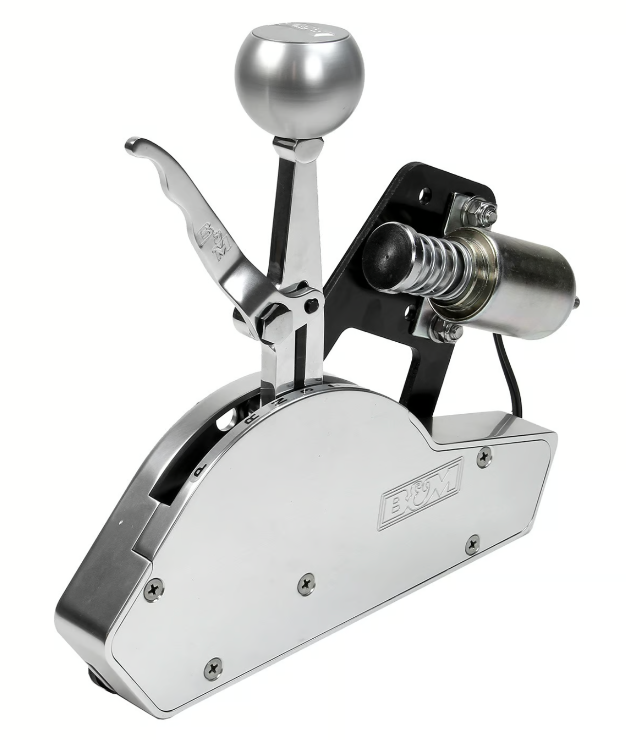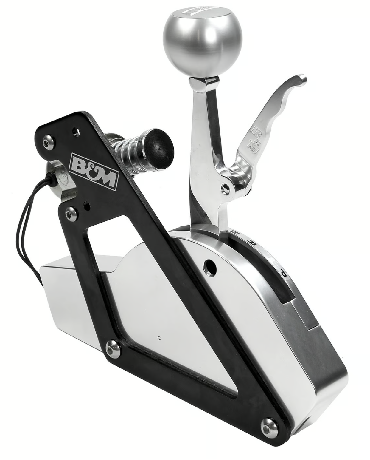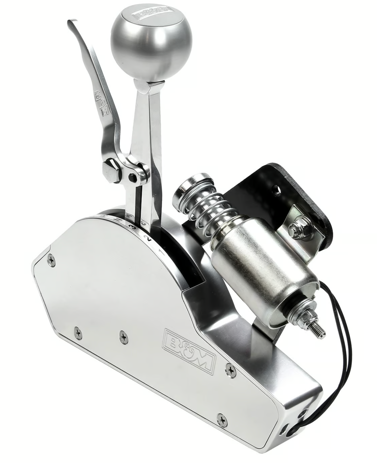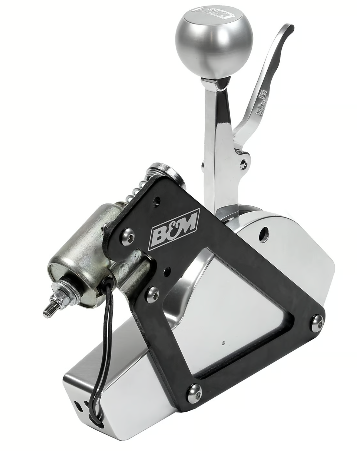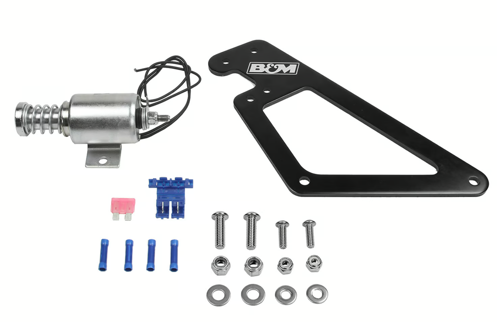 This B&M electric shift solenoid fits Pro Bandit and Street Bandit shifters. Built with 5052 aluminum brackets and heavy duty solenoids to provide positive and consistent 1-2 shifts. The brackets are mil-spec (military specification) black anodized with laser engraving for a clean, stealthy appearance and the low amperage draw will cause no charging concerns when the rounds get faster.