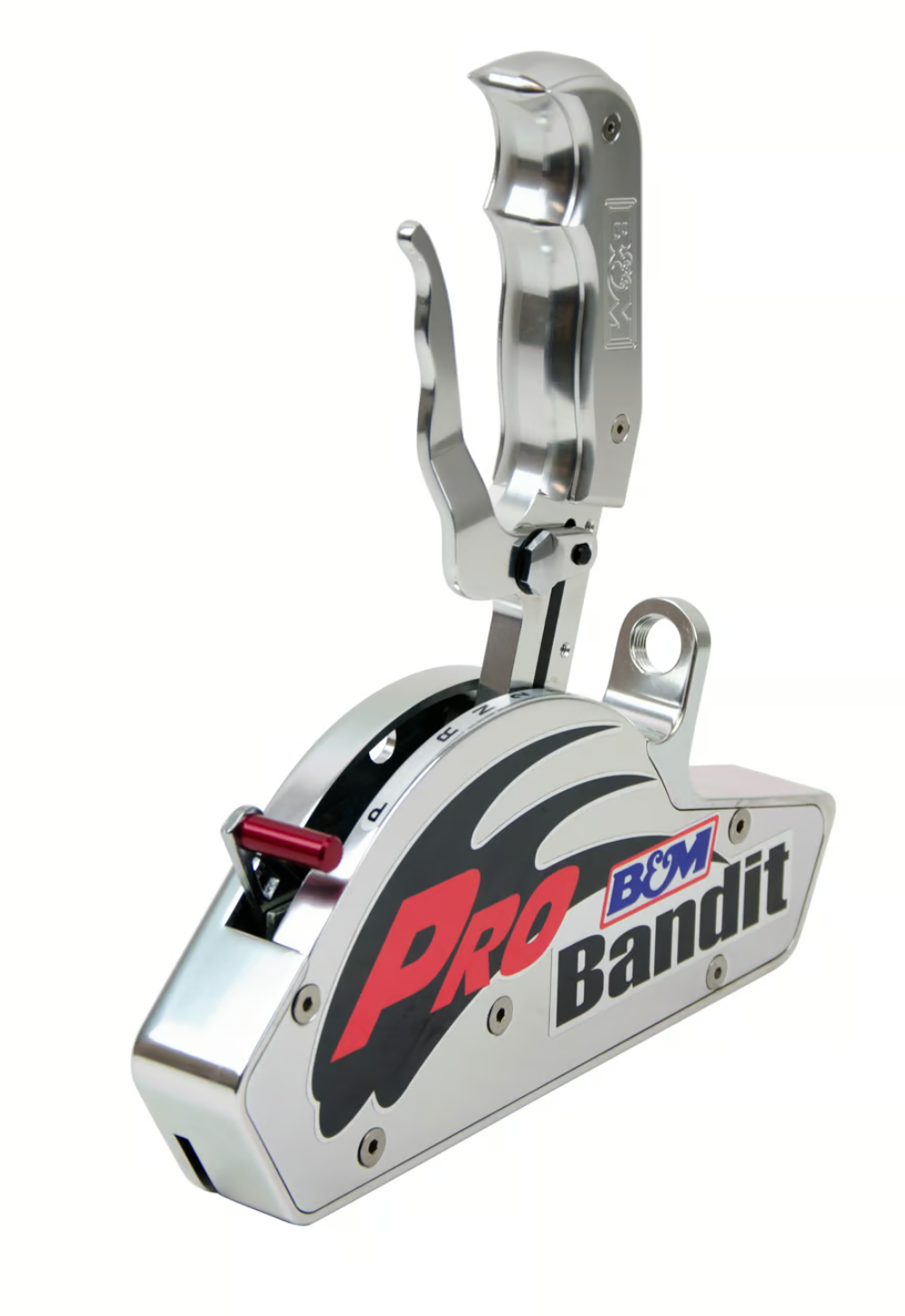With its cutting-edge Magnum Grip design combined with the race-proven mechanics, the Magnum Grip Pro Bandit offers an unbeatable combination of race performance, functionality, and looks! This race shifter comes set up for 2-speed Powerglide transmissions and is packed with all kinds of features. Starting out as a seven-pound block of 6061-T6 aluminum, the Pro Bandit shifter features CNC machined construction, ergonomically shaped Magnum Grip shift handle with replaceable side grip plates, polished & matte finish, reverse lockout meets NHRA/IHRA safety rules, compatible with forward or reverse pattern valve bodies and capable of controlling 2, 3 and 4-speed automatic transmissions by simply replacing the hardened steel gate plate and applicable bracket and lever (bracket and cable not included). Other features include a Powerglide Pro Lever, cable quick disconnect extension and offers a built-in mounting location for adding an optional CO2 shift cylinder #80883 or mount an electric shift solenoid for P/G applications. Comes with detailed instructions for an easy installation. Optional gate plates, cable brackets, lever kits, and side grip plates with and without 12V momentary buttons are available separately. Overall Dimensions - 10L x 1.3W x 9.3H