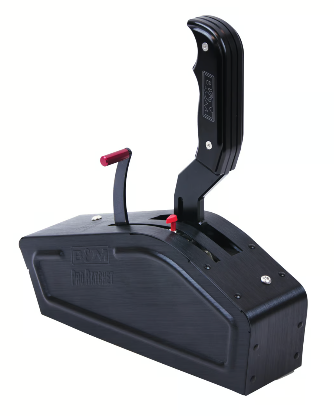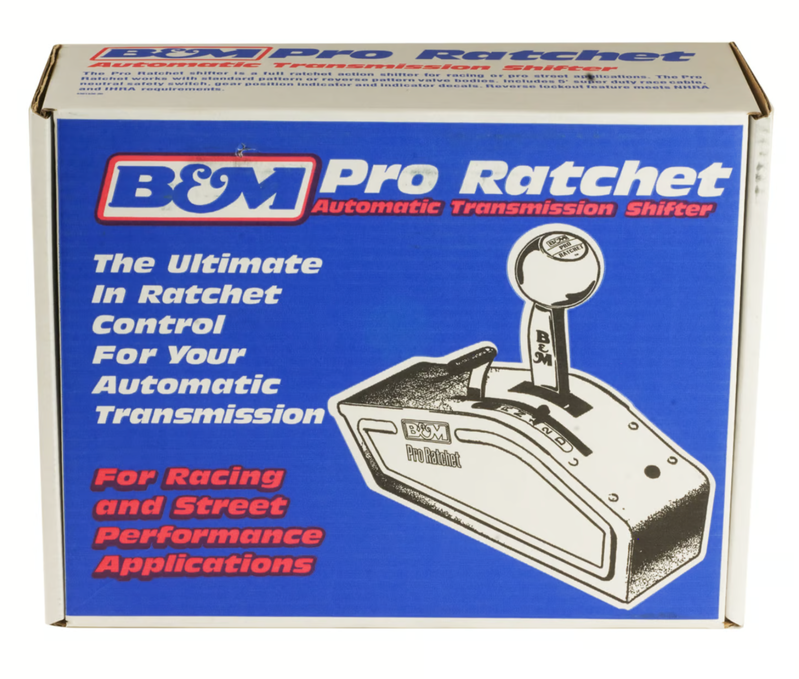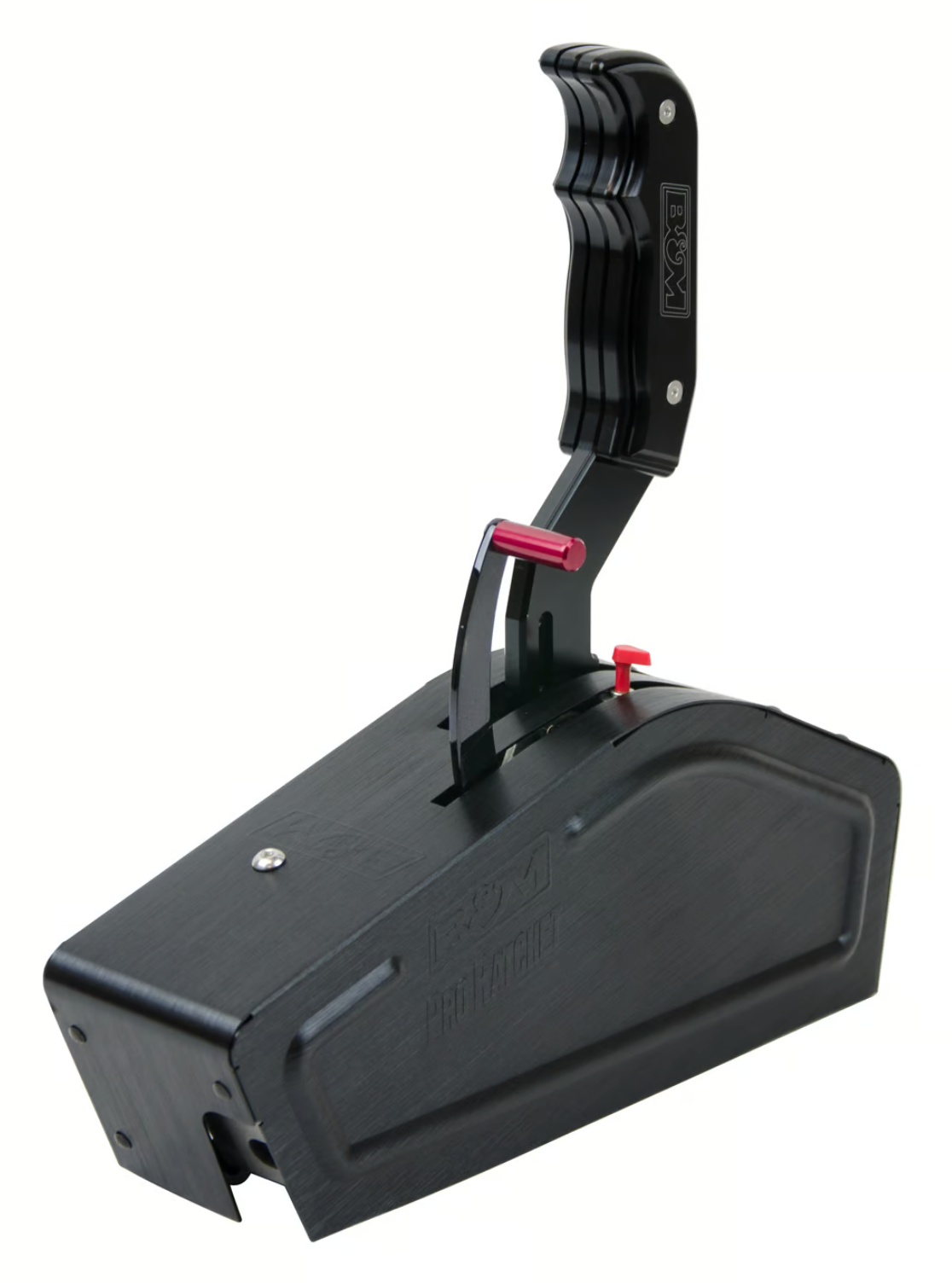 The Magnum Grip Stealth Pro Ratchet shifter is one of our most popular and easiest to operate race shifters. Features include positive ratcheting design that self-centers the handle after each shift giving you maximum clearance behind the shifter and will not allow you to miss a shift by over-shifting a gear. The reverse lockout feature only requires one-hand to operate and meets both NHRA and IHRA safety regulations for racing. Other features include a neutral safety switch, backup light switch, along with a simulated carbon fiber wrapped aluminum cover. The cover is treated to a high quality hydro-dip process and material to add a high-tech and realistic carbon look to your vehicle's interior, but at a substantial cost savings versus carbon fiber. This shifter includes our Magnum Grip shift handle with replaceable side grip plates, tough black anodized finish, 5-foot long Super-duty shift cable, gear indicator, cable brackets and transmission levers for use with most popular 3-speed transmissions. Comes with all necessary hardware and detailed instructions for an easy at home installation. Be sure to check out all the optional side grip Comes with all necessary parts for use with three and four-speed automatic transmissions such as 1966 and later Chrysler Torqueflite A727, A904, A500, A518, Ford C4, C5, C6, GM TH200, TH250, TH350, TH400, 2004R, 700R4, 4L60, 4L60E - 4L85E without PRNDL switch. Notes: Ford AOD transmissions require installation kit #40496, AODE and 4R70W require installation kit #40504, E40D and 4R100 require installation kit #40505 and GM 4L60E - 4L85E transmissions with PRNDL switch require cable bracket #70499. Overall dimensions - 10.75L x 2.9W x 12H