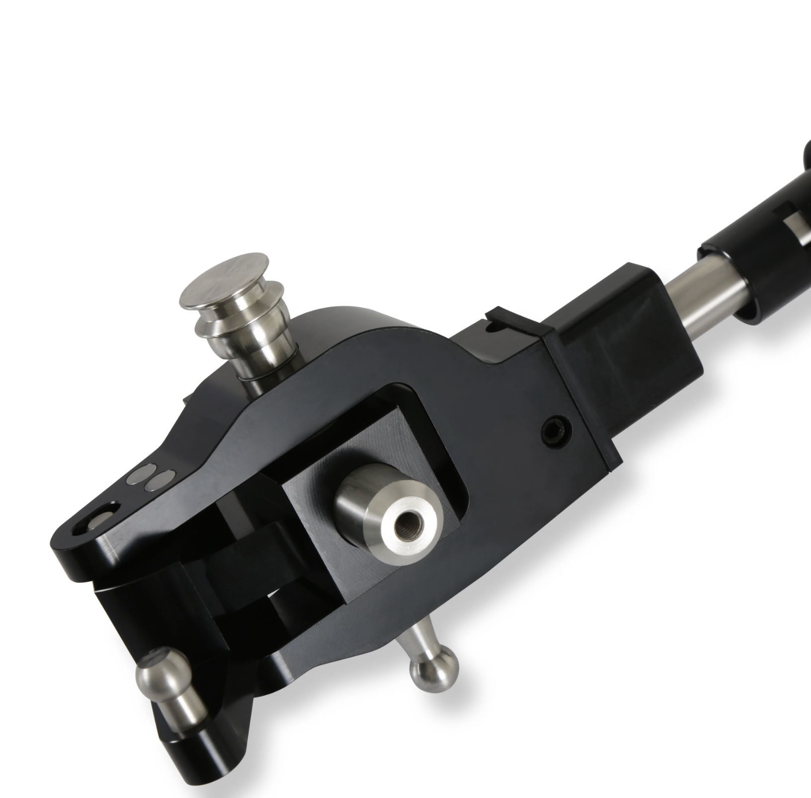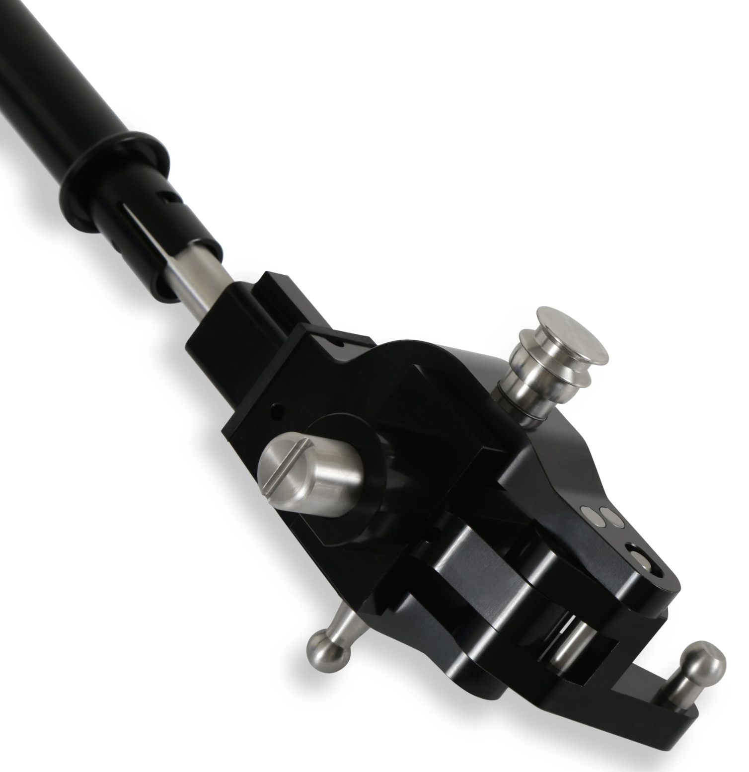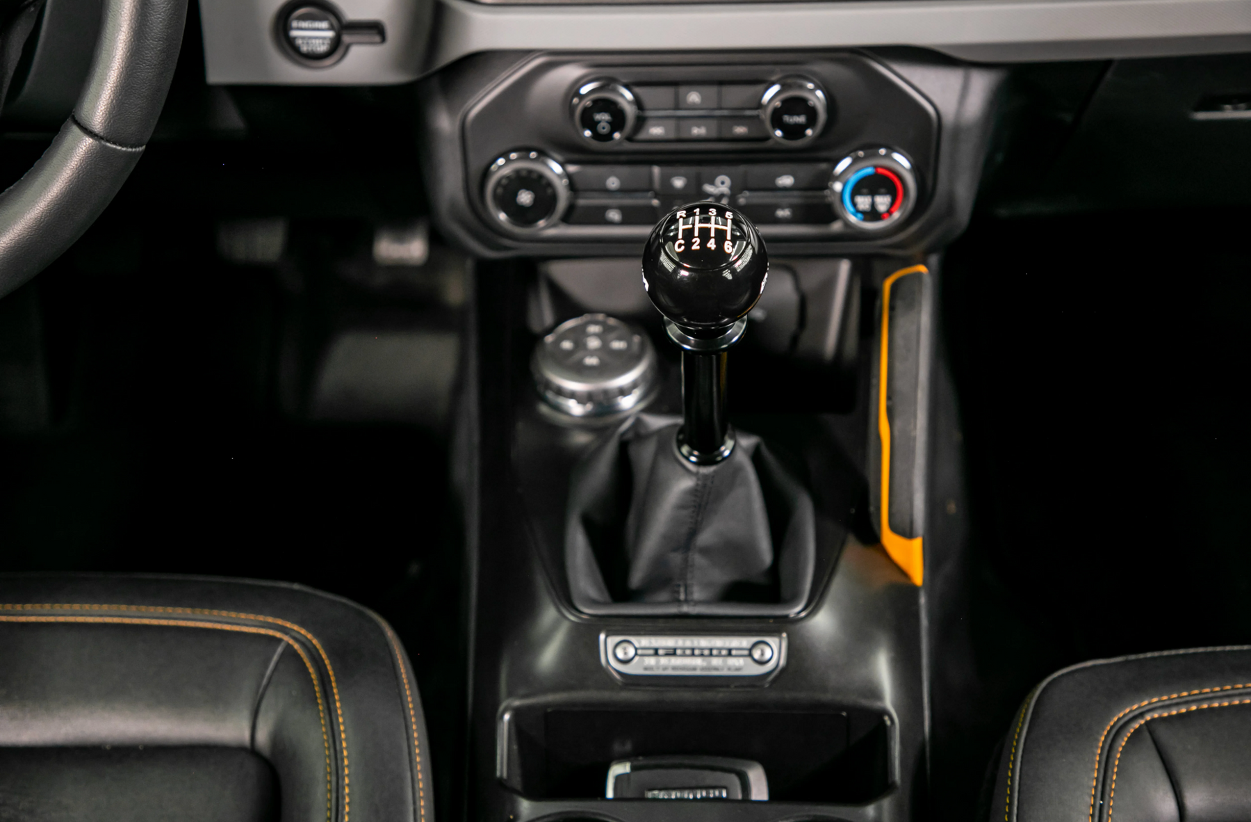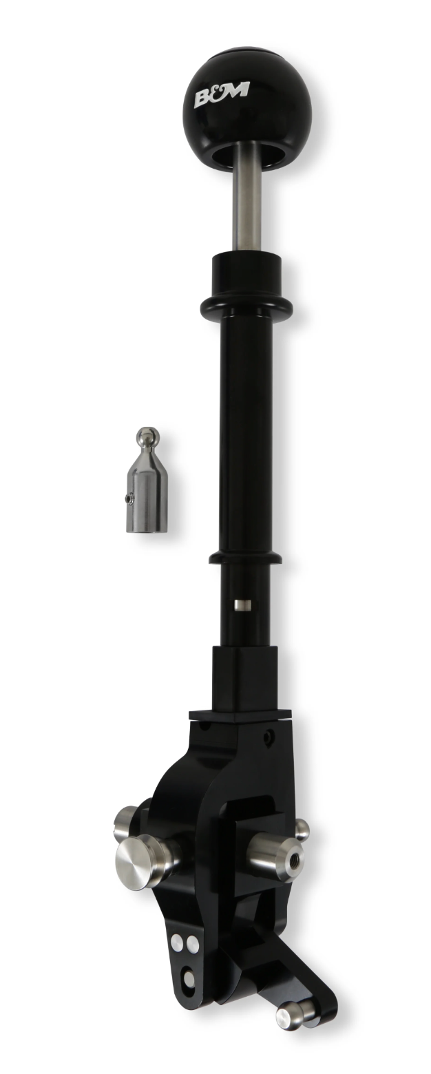 This B&M Precision SportShifter for the modern Bronco platform with the 2.3-liter Engine and 7-Speed manual transmission includes a 303 stainless steel stick with an anodized aluminum pivot. Our design reduces the throw by a massive 40% over the factory shifter and provides a shorter more positive feel when shifting gears. To help accomplish this, we increased the stick height by almost 3 inches to create a much more ergonomic shifter position. The factory shifter sits lower than the center console, but ours sits in line with it so you can rest your arm on the console and shift more comfortably. The factory leather shift boot is also retained and attaches to the new black anodized aluminum lockout slider to smoothly and easily actuate reverse. The included black round shift knob shows the shift pattern on top and B&M logos on the sides, both filled in white to tastefully compliment the interior of the Bronco. Also, this shifter has 100% compatibility with the factory knob, so if you want to retain your leather-wrapped knob instead of the B&M knob, you can do so. Finally, the SportShifter attaches directly to the OEM shift cable and includes installation instructions and all hardware necessary for an easy at-home installation.