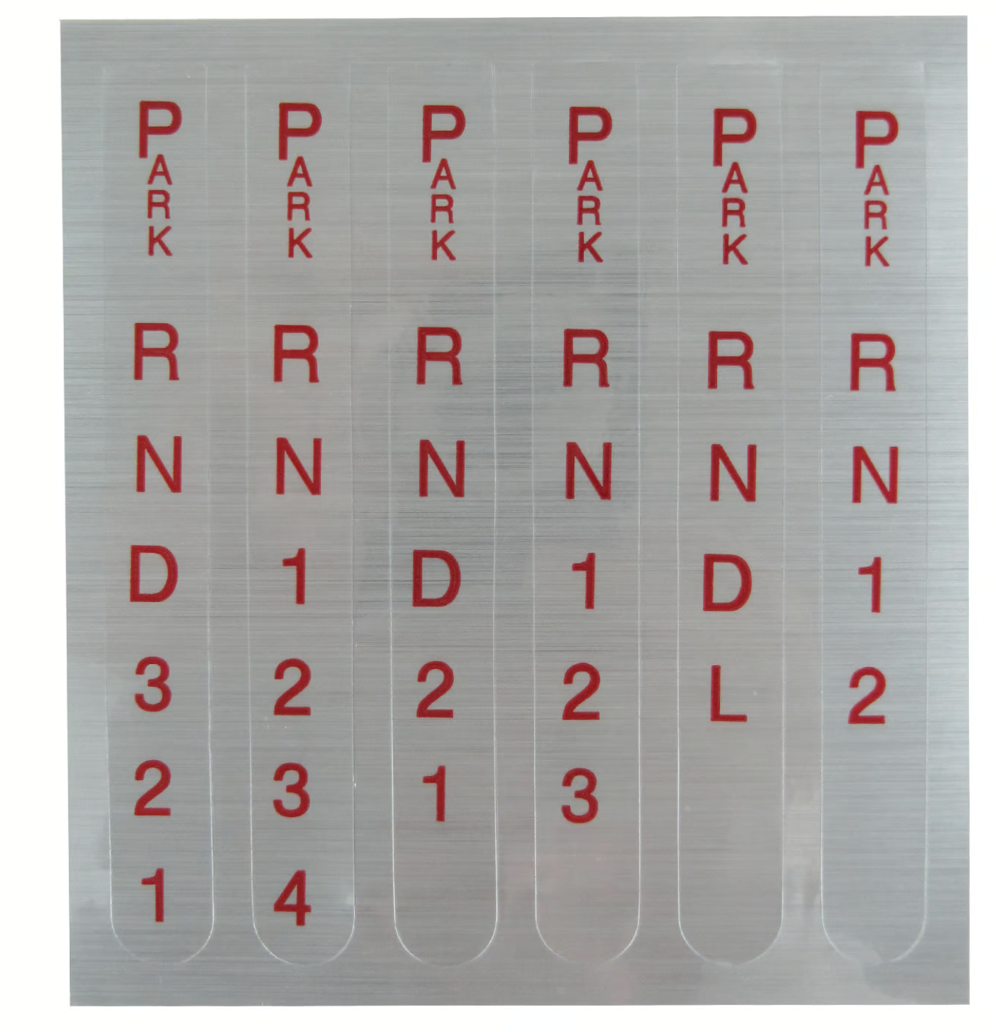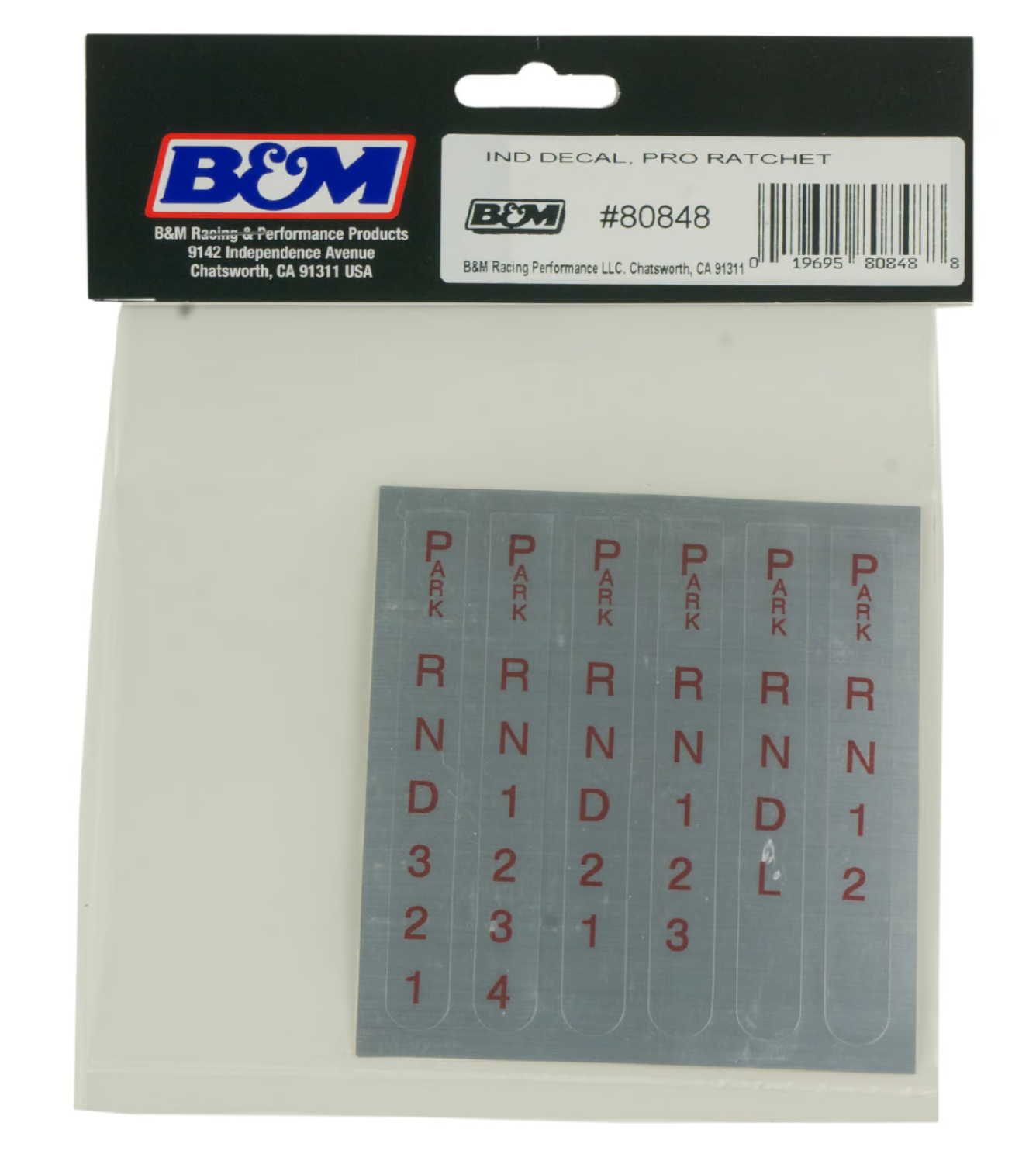 Replacement indicator decal with a reverse or standard shift pattern for B&M Pro Ratchet shifter part numbers 80840 and 80842.