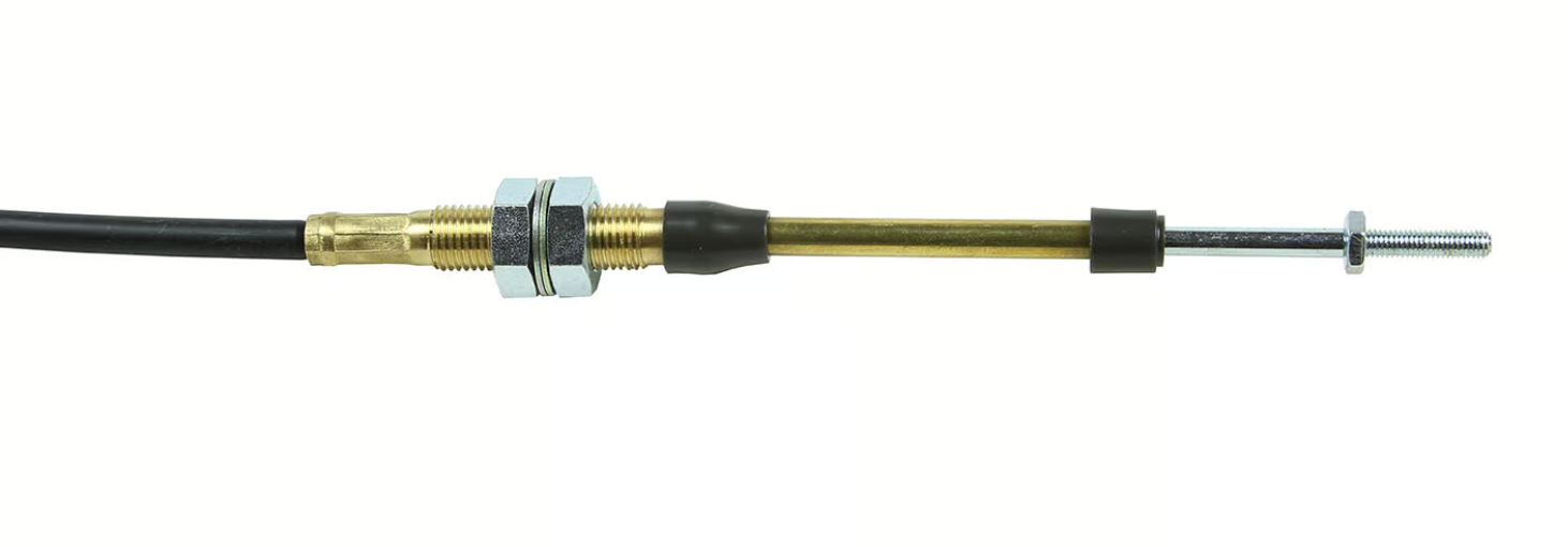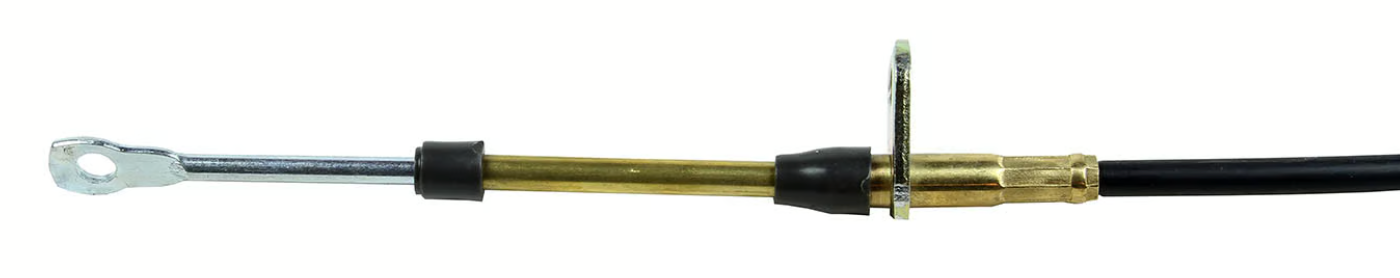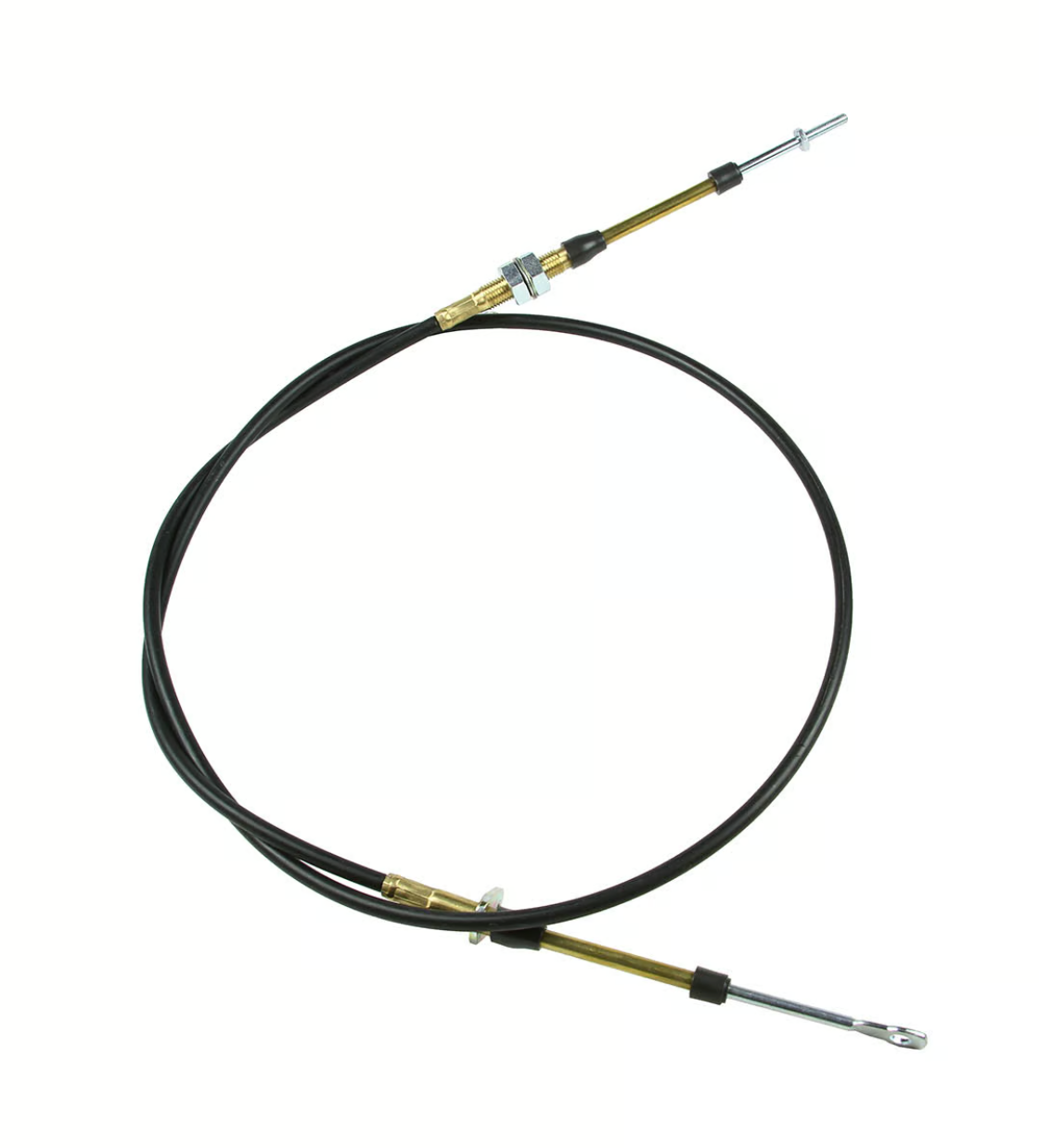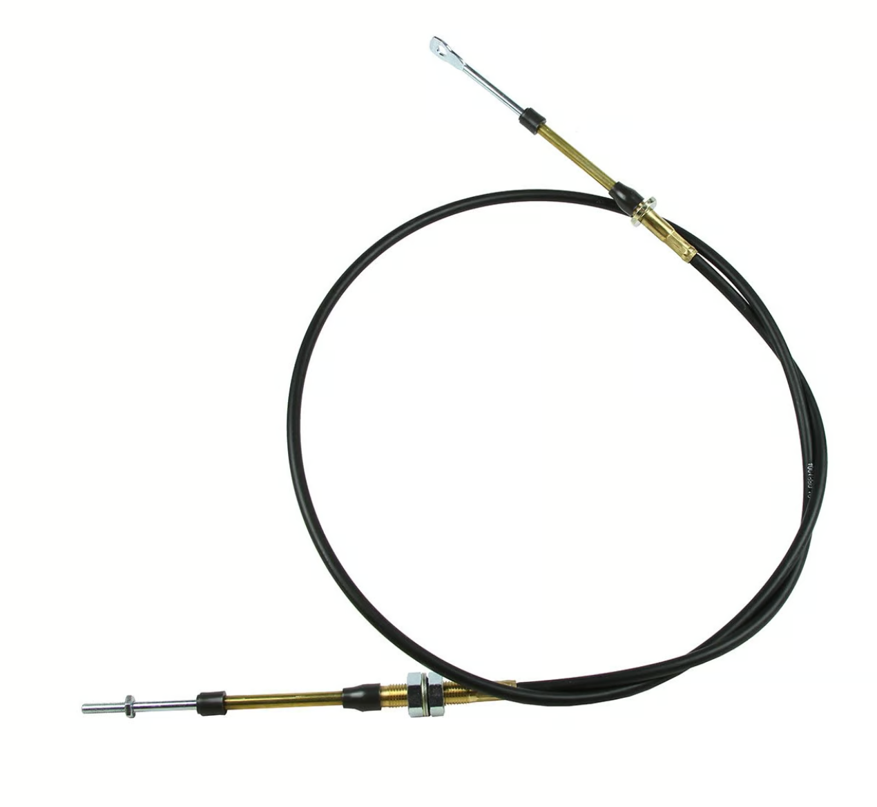 B&M performance shifter cables are available with a black cable housing for most B&M street shifters. This is our 5-foot performance replacement shifter cable for most B&M automatic shifters. It is properly clearanced to reduce backlash and has a .250-inch 'long-lay' (stiffer, less prone to kinking) black outer jacket for durability. The cable features an eyelet at one end to connect to the shifter and a 10-32 threaded end at the transmission side of the cable and has a 2.50-inch stroke. This is the standard cable supplied with most B&M Shifters.