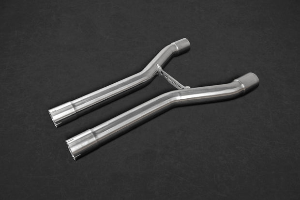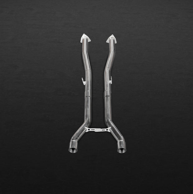 The CAPRISTO Middle Silencer Replacement Pipes replace the highly restrictive Bentley resonator, which will allow for a more free flowing exhaust. When combined with our valved exhaust system, it will give top performance and sound.