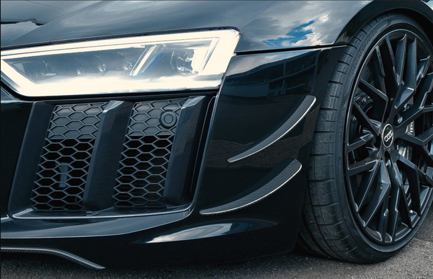 Give your R8 an aggressive look along with improving aerodynamic efficiency with these carbon front fins.