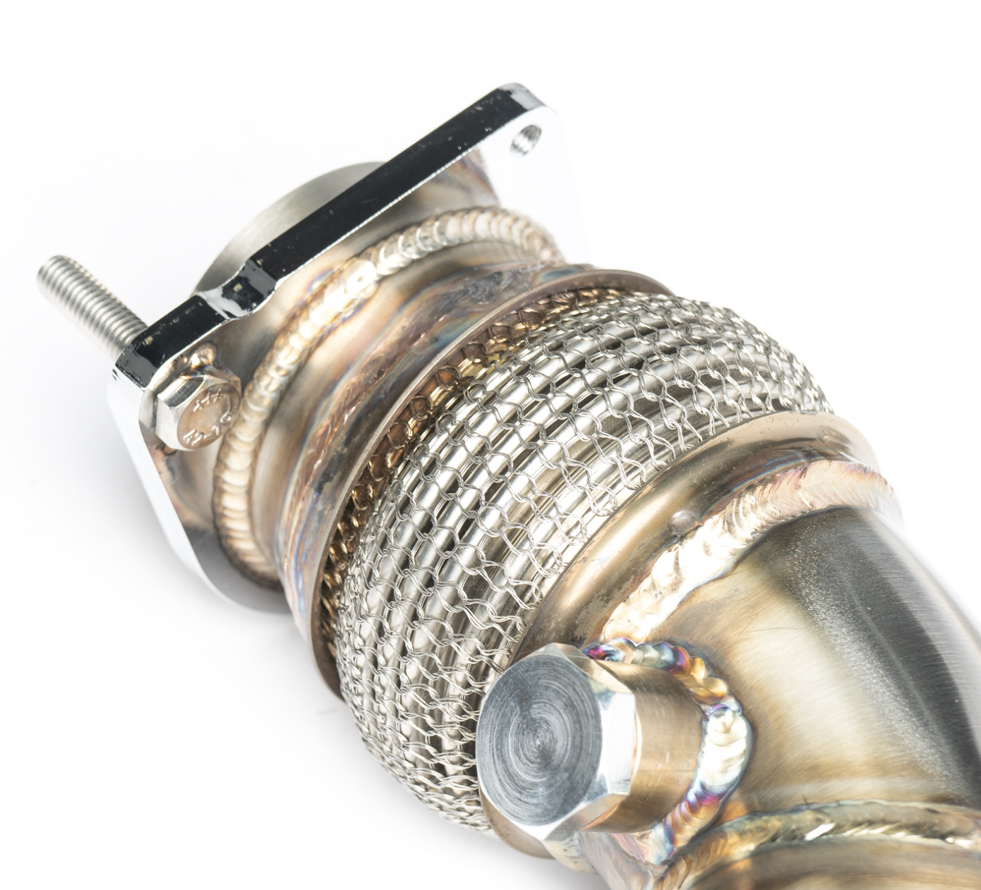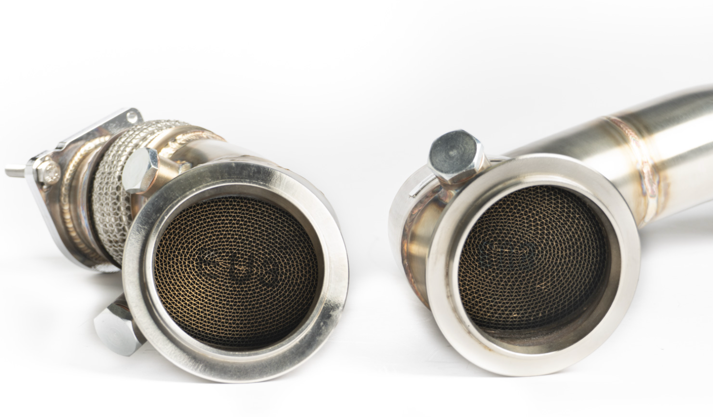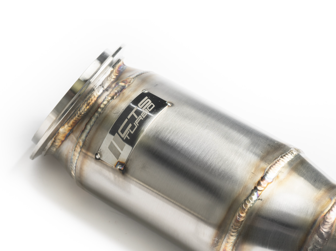 Our stainless steel high-flow CAT downpipes allow for faster spool, better transient boost response, higher boost, and great sound. Our downpipes are the first part of our modular exhaust system and are compatible with factory mid-pipes and our upcoming CTS Turbo mid-pipes. You should expect strong torque gains when paired with appropriate tuning software. We used CAD simulation to streamline the flow of exhaust gasses and ensure seamless integration with the factory and CTS exhaust components. Many hours of R&D were spent to ensure a perfect fit, smooth exhaust flow, and excellent sound.