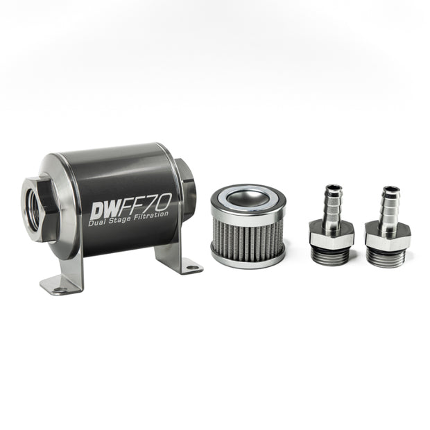 DeatschWerks Stainless Steel 3/8in 100 Micron Universal Inline Fuel Filter Housing Kit (70mm)