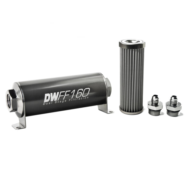 DeatschWerks Stainless Steel 6AN 40 Micron Universal Inline Fuel Filter Housing Kit (160mm)