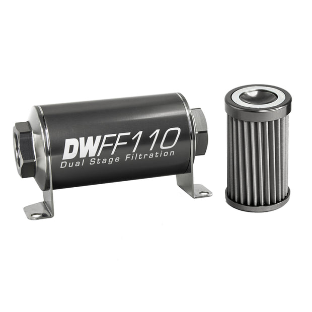DeatschWerks Stainless Steel 8AN 40 Micron Universal Inline Fuel Filter Housing Kit (110mm)