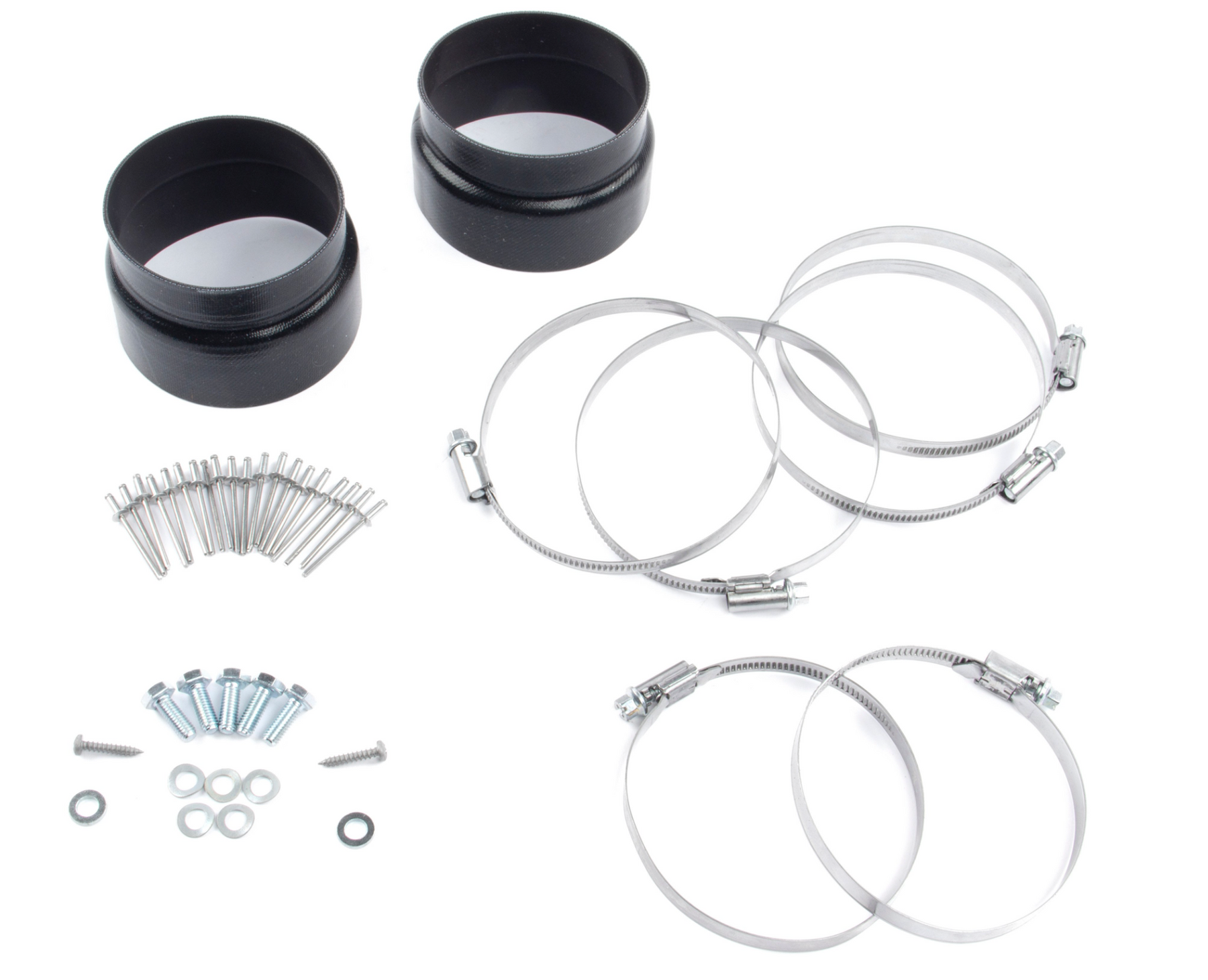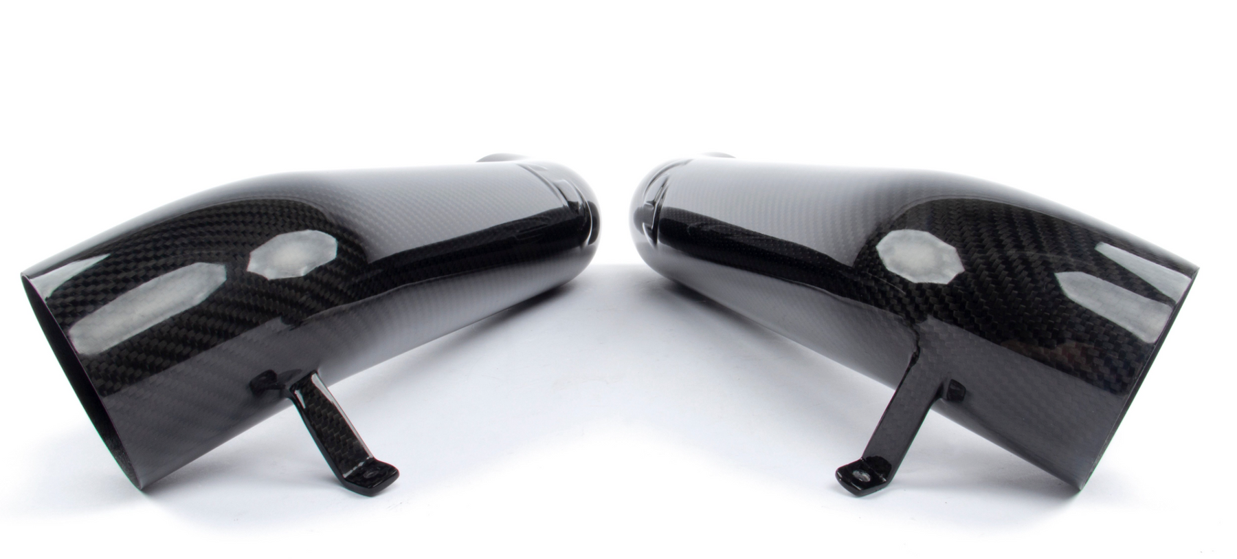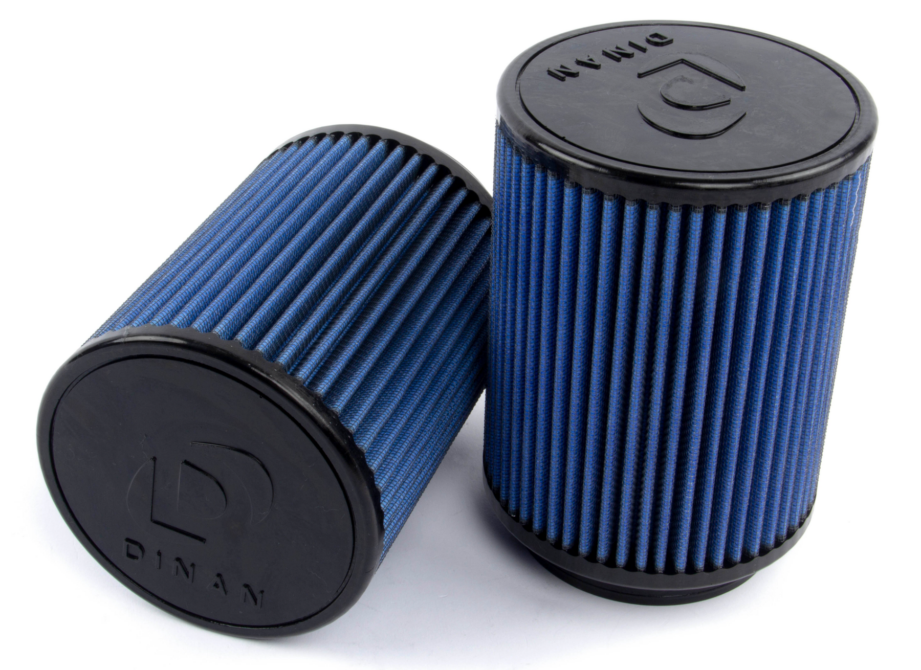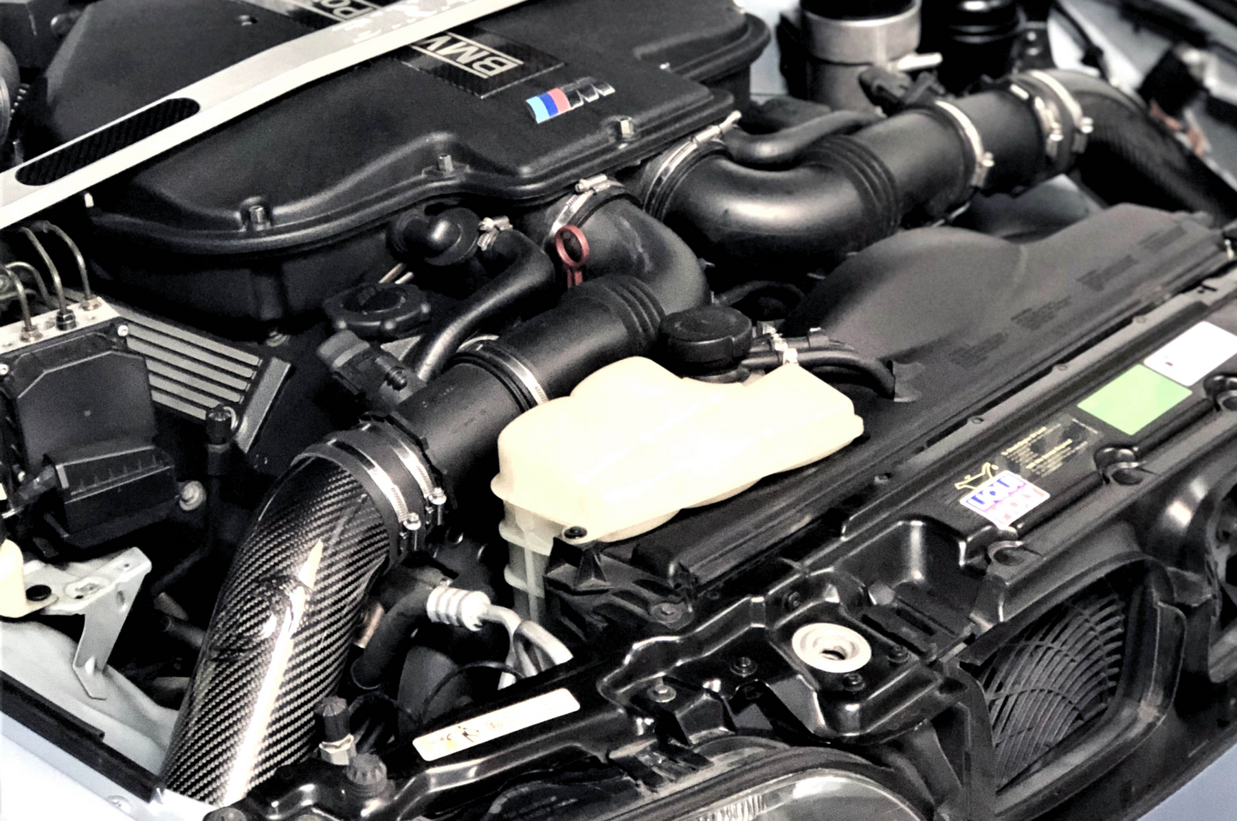 The design goal for the M5 High Flow Cold Air Intake System was very specific: ensure that the powerful M5 engine is breathing plenty of cool oxygen-rich air for maximum performance under varying driving conditions. The system replaces the factory air-boxes with proprietary twin high flow air filters feeding large diameter intake plumbing, carefully designed to minimize air turbulence for maximum intake airflow. The filters are relocated outside of the engine compartment behind the front bumper and below the headlights insulating the intake from under-hood heat. Additional heat shields are incorporated in order to block the flow of power-robbing hot air passing over the radiator. The system also includes modified fog light trim rings for a ram air effect at speed. Ongoing development of the intake system revealed an interesting and significant discovery. Based upon exhaustive testing, it was determined that the stock location of the air temperature sensor within the Air Mass Meter was providing the engine management system with an artificially high reading, resulting in reduced power output. The culprit was determined to be ''heat soaking'' of the Air Mass Meter when an adequate flow of air was not passing over it, such as in daily stop and go traffic, producing a reading substantially higher than the actual temperature of the air entering the intake system. BMW's sophisticated engine management system would then automatically back off timing as a result, reducing available power until such time as the airflow cools the Air Mass Meter down. Therefore, the Dinan intake system includes an air temperature sensor relocation kit as part of the system, providing the engine management system with a more accurate reading and consistent performance. The newest iteration of the system goes back to its carbon fiber roots for a more showroom worthy appearance complete with an embossed Dinan logos instead of the inset Mylar decals that was prone to marring after decades of use.