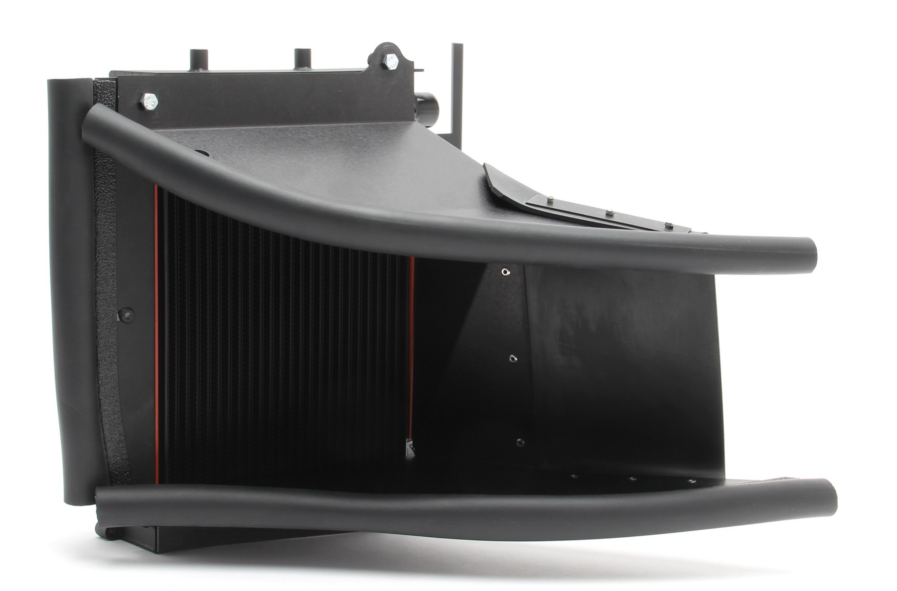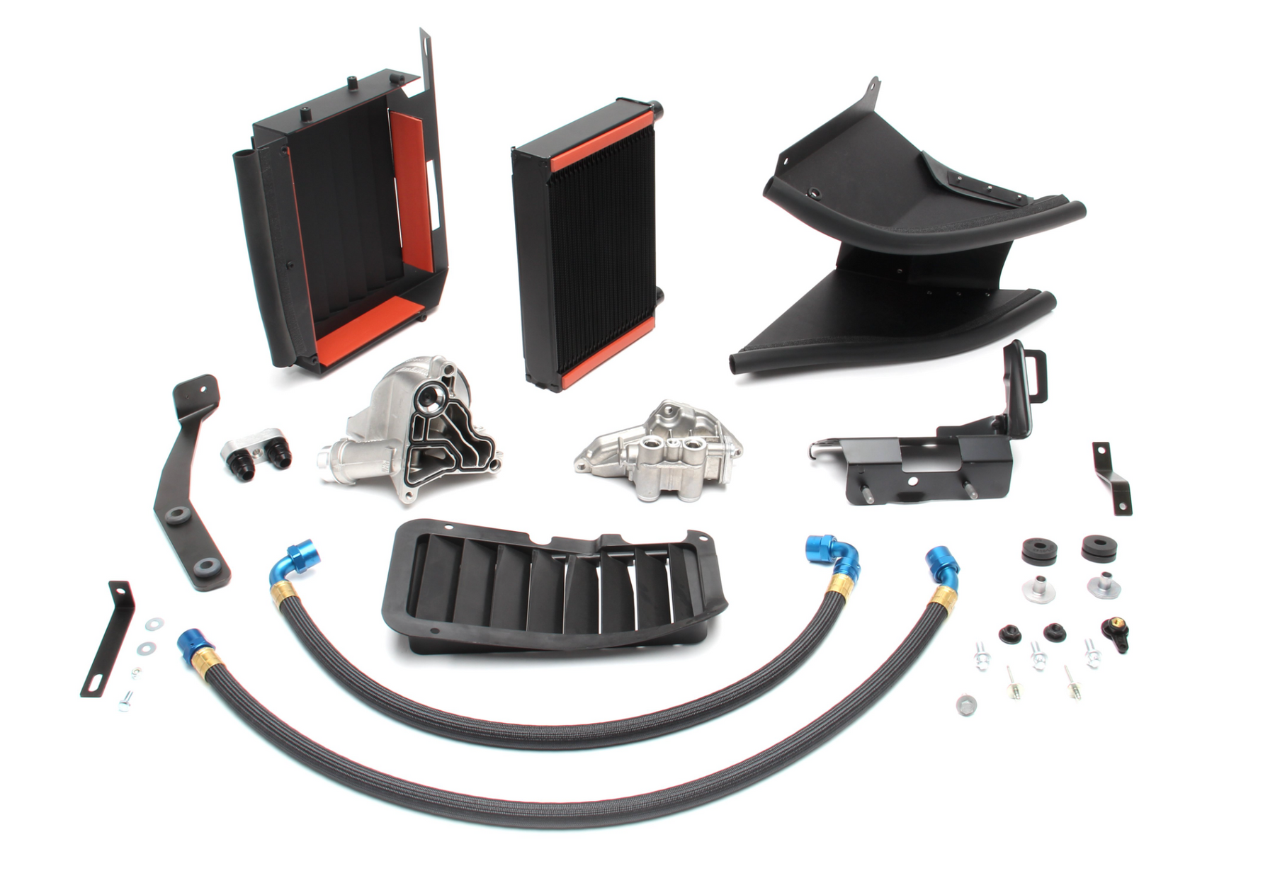 It's no secret among 335 owners that while the cars perform admirably, they tend to run a bit on the warm side. This appears to be true even with the cars equipped with the factory oil cooler; and in case you weren't aware, not all 335's came with an oil cooler at all! For those who drive the cars in a spirited fashion on a regular basis, this issue is even more pronounced. While this is certainly a concern in stock form, it becomes even more of an issue when you consider increasing boost pressure, which in addition to added power output also generates more heat. And when you back your products with matching new car warranty coverage, including consequential damages, you tend to be a bit more concerned about the real-world ramifications of increased turbo boost pressure on the car as a whole. Recognizing the significance of this issue, Dinan set out to develop a more efficient heat exchanger, ultimately in the form of a High Capacity Oil Cooler. Two complete systems have been developed, one for vehicles that weren't equipped with a factory oil cooler and the other as an upgrade for the stock unit. Now every 335 driver has the opportunity to lower operating temperatures significantly, providing peace of mind as well as avoiding that notorious "limp" mode when things get simply too hot. The Dinan High Capacity Oil Cooler provides literally twice the volume of the stock unit, as well as 414 sq./in. of cooling tube vs. 112.5, and that's really just the beginning. Nicely integrated inlet ducting provides greater airflow efficiencies and the ventilation of air to the fender well has also been improved with a larger outlet. The system mounts neatly in the stock location and includes lightweight PTFE hoses with polyester outer braid fitted with race-quality fittings. For cars that were not equipped with the factory oil cooler, kits are available that include all of the additional parts necessary for the installation. The results of the oil cooler upgrade are quite significant, with the temperature gauge holding steady even under high load/high boost scenarios. And for those of you who track their cars, even occasionally, the Dinan oil cooler is a must.