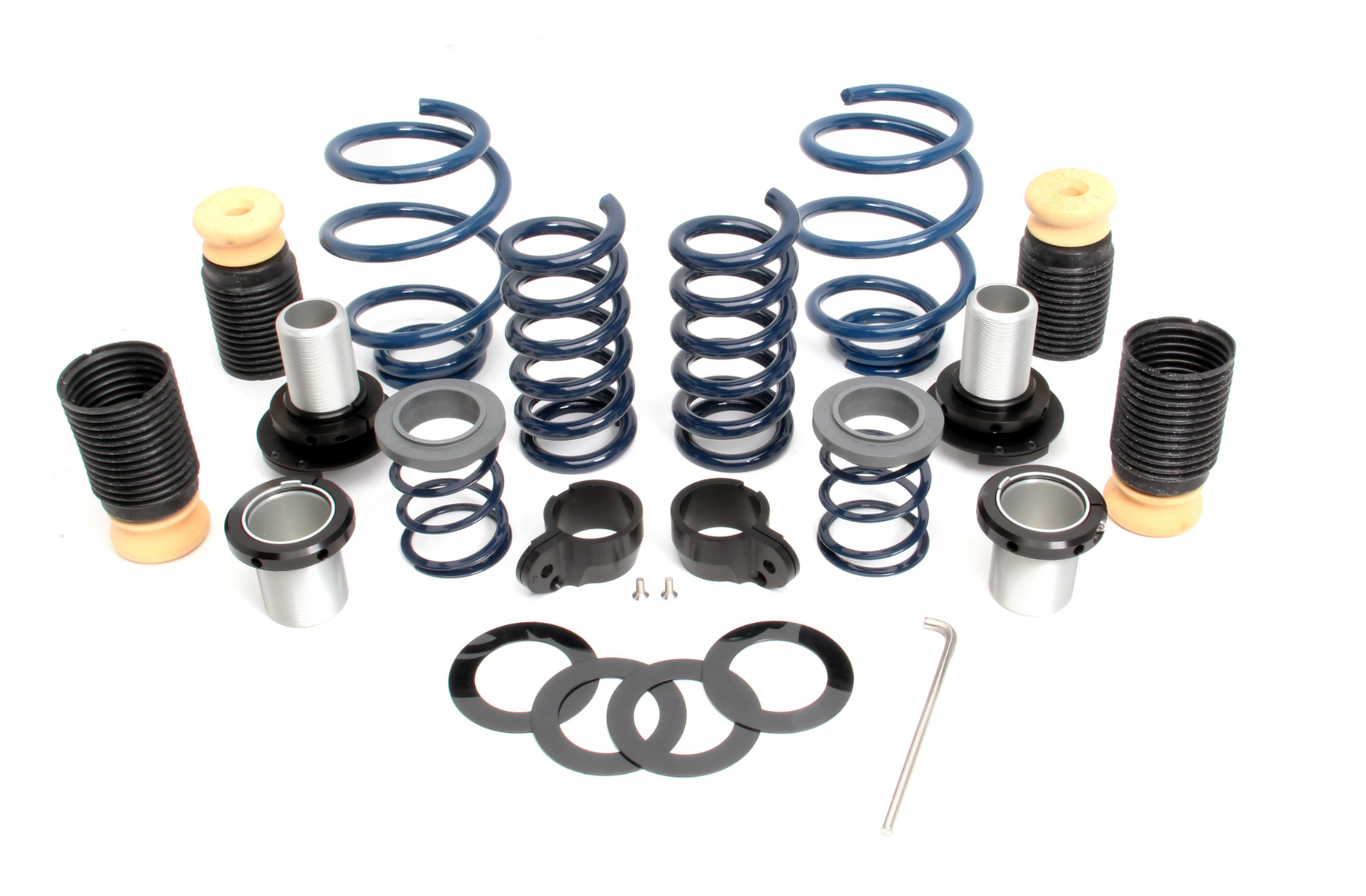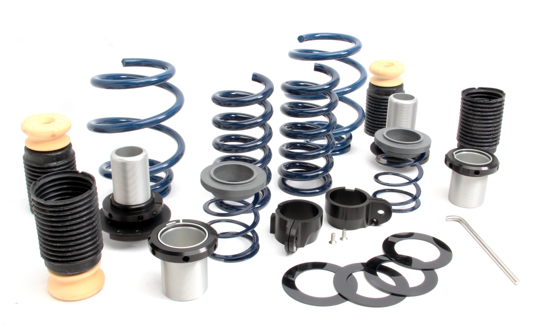 For the driver that demands the best out of their vehicle. The Dinan Adjustable Coil-Over Suspension was bred in the race lab but refined on the street for maximum versatility. No matter the environment, the traction that is bestowed upon the vehicle from the improved suspension will inspire new found confidence when running at higher speeds. Combined with a substantial reduction in body roll as well as reducing dive under braking and squat under acceleration. Dinan will guarantee you superior handling, performance, and comfort. Dinan's design implements threaded collars to allow the user to change the ride height. The end result is a sleek lowered stance that provides improved handling to go along with its stunning visual appearance. The springs combined with progressive bump stops and other components increase travel that allows the car to be lowered up to one inch in the front and 1-1/2 inches the rear. Suspension packers are included to fine-tune handling and comfort by changing the clearance of the progressive bump-stops, something no respectable race car is without. Components are machined from 6061-T6 aluminum and black anodized for appearance and corrosion protection. Due to the extensive lowering possible and the increased suspension travel, the installer must carefully evaluate tire clearance under all situations. Safety will be compromised if all precautions are not taken. Dinan is not responsible for any property damage or injury.