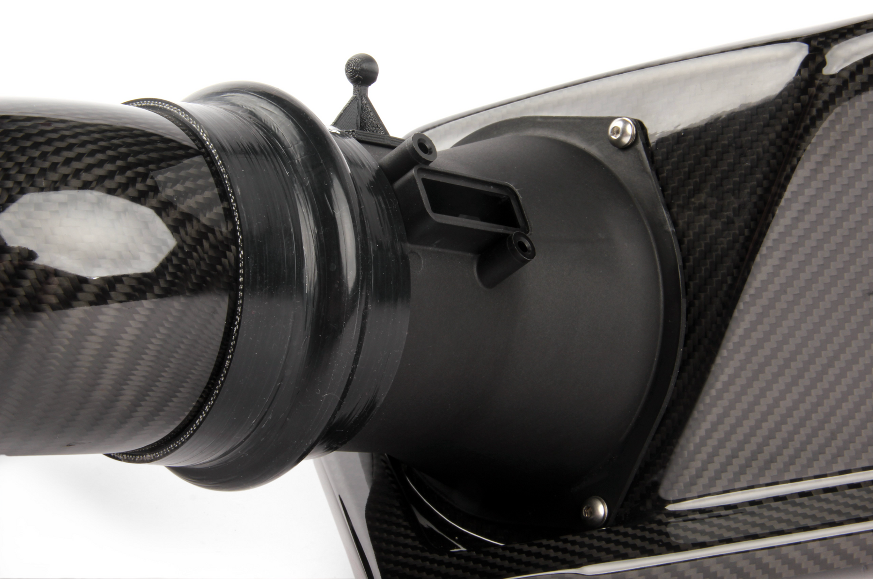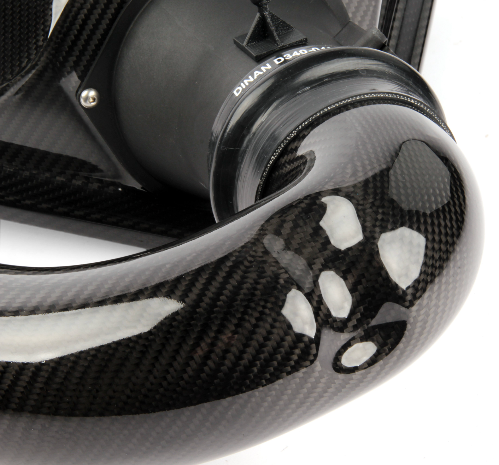 Following in the footsteps of its big brother on the B58 engine, the 4 cylinder intake takes the same path to success. Improve upon the factory design by increasing flow via a larger airbox and filter element thereby improving throttle response and lessening the strain on the turbocharger for maximum efficiency. While box and filter enlargement and redesign are a major factor in ultimately producing a more potent intake they are not the only variables in creating a more efficient design either. The devil is in the details which is where Dinan thrives. Coupled with maintaining Dinan's standard practice of utilizing a sealed system to ensure as much cold, outside air as possible is employed Dinan engineers focused their attention on the intake pipe itself where numerous improvements could be made. In factory configuration, the intake tube comes complete with baffling and a small Helmholtz chamber to reduce unwanted sound. As a byproduct, these features also cause a more turbulent airflow path which robs the factory system of potential power. These two specific details are diametrically opposed to our intended market's desires so the removal of these features was paramount. Through numerous iterations, a carbon fiber intake tube was developed that eliminated flow disruptions and allowed the natural sound of an unimpeded intake tract to sing. All told this thorough methodology of design allows the Dinan carbon fiber cold air intake for the B46/B48 engine to elicit gains of 6 HP and 6 TRQ at 5000 RPM on a completely stock vehicle. An impressive feat on today's turbocharged engines. Not to be outdone by the performance side of the equation the B46/B48 intake also is completely made up of carbon fiber unlike 4 cylinder intakes of the past where a mix of materials was used. Not only is the intake completely carbon construction but the quality of the material has been improved over previous generations as well. While looks are surely important, and this piece has that department covered in spades, the improved construction and coating also guarantees that the appearance of the engine bay with the Dinan intake will not be marred over time. Built to present well, perform well, and last the duration, the Dinan B46/B48 carbon fiber cold air intake is a modification that is a must for any high-performance build.