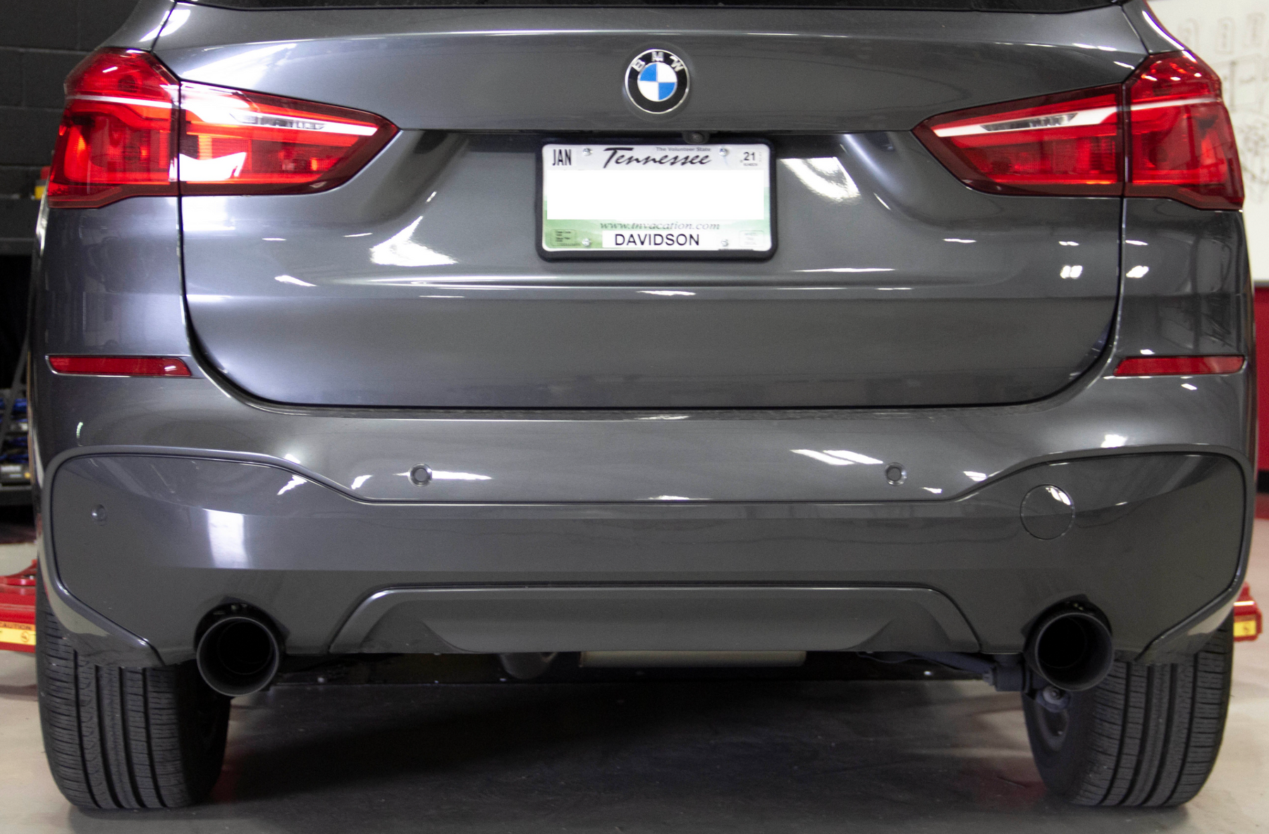 The F48 X1 and F39 X2 BMW crossovers are, by volume, one of the most successful lines in the BMW brand portfolio. That success capitalizing on those that want the additional cabin space, akin to an SUV, but without the huge sacrifice to fuel economy courtesy of the fuel efficient B48 4-cylinder engine. For a wide swath of the consumers in these vehicles that is enough and all that is desired. However, for a growing segment of the market, there are also those that want even more. Namely performance, and by association, sound, more commonly associated with the sportier B58 6-cylinder engine. From the factory the stock X1/X2 exhaust is largely silent in all modes which is a travesty for any those consumers that fit in the "more" category, but Dinan offers a solution that rights that wrong. The Dinan exhaust system offers a dramatically improved exhaust note that is not only louder but fuller and deeper as well. 70mm piping, free of hydroforming, is used throughout that allows freer flow to traverse the entirety of the system. The tubing is then fed into a streamlined muffler that is typical of all Dinan exhaust design and utilizes absorption technologies designed to improve exhaust flow and reduce back pressure. The combination results in mildly improved power output at the extreme top end of the power band and a great sporty sound complete with pops for additional aural gratification. Factory valve control is also retained to ensure the perfect blend of civility when not pushing the car and a bit of additional character when in it. Regardless of driving style or conditions the system is purposefully engineered to reduce low-RPM drone, so the cabin of the vehicle remains intimate and not drowned in an excessively loud tone. While sound is the primary reason for any exhaust purchase the styling and craftsmanship also play an important role for the discerning buyer. The Dinan X1/X2 exhaust has been skillfully crafted entirely out of T304 stainless steel and TIG welded for the best visual appearance and color. The entire system is then brush-finished to further guarantee an immaculate looking system out of the box. The attention to detail is not limited to parts of the system you can't see once the exhaust is installed but is also extended to the exhaust tips themselves. The Dinan exhaust sports enormous, dual 4" (102mm) clamp-on, double-walled, polished and laser engraved exhaust tips. Dinan has retained its signature straight cut tip design, safeguarding its unique and elegant styling position, amongst a marketplace dominated by angle cuts. The tips masterfully fill up and accentuate upon the factory cut-outs showcasing an extremely aggressive, yet refined, styling that will turn heads even before it is heard.