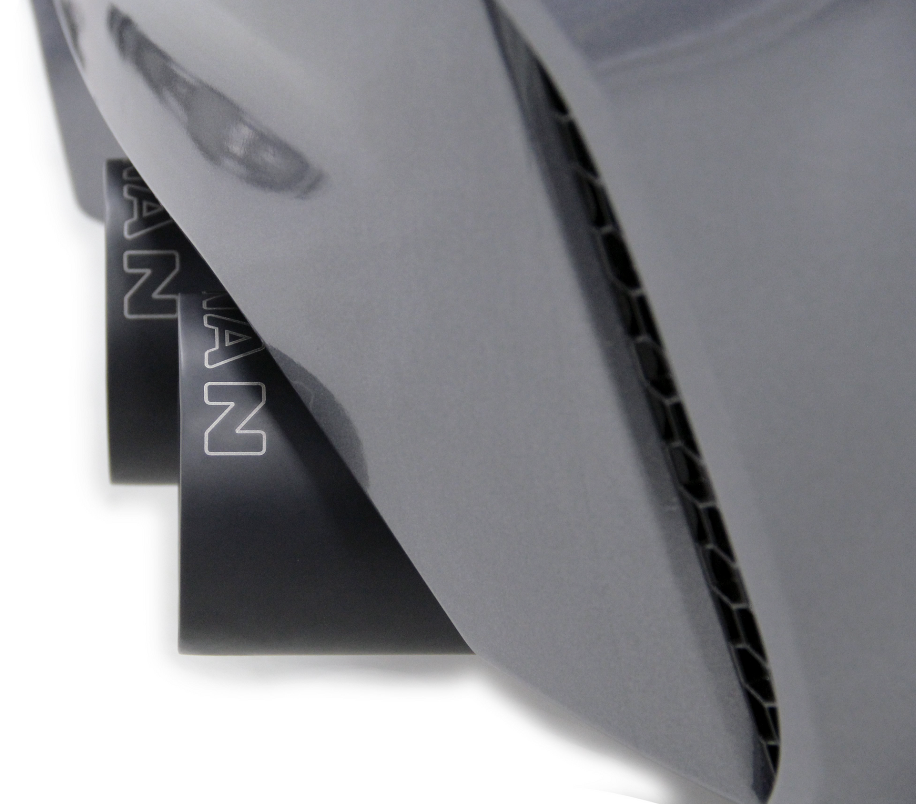 Four massive 4" diameter clamp-on, double-walled, polished and laser engraved exhaust tips