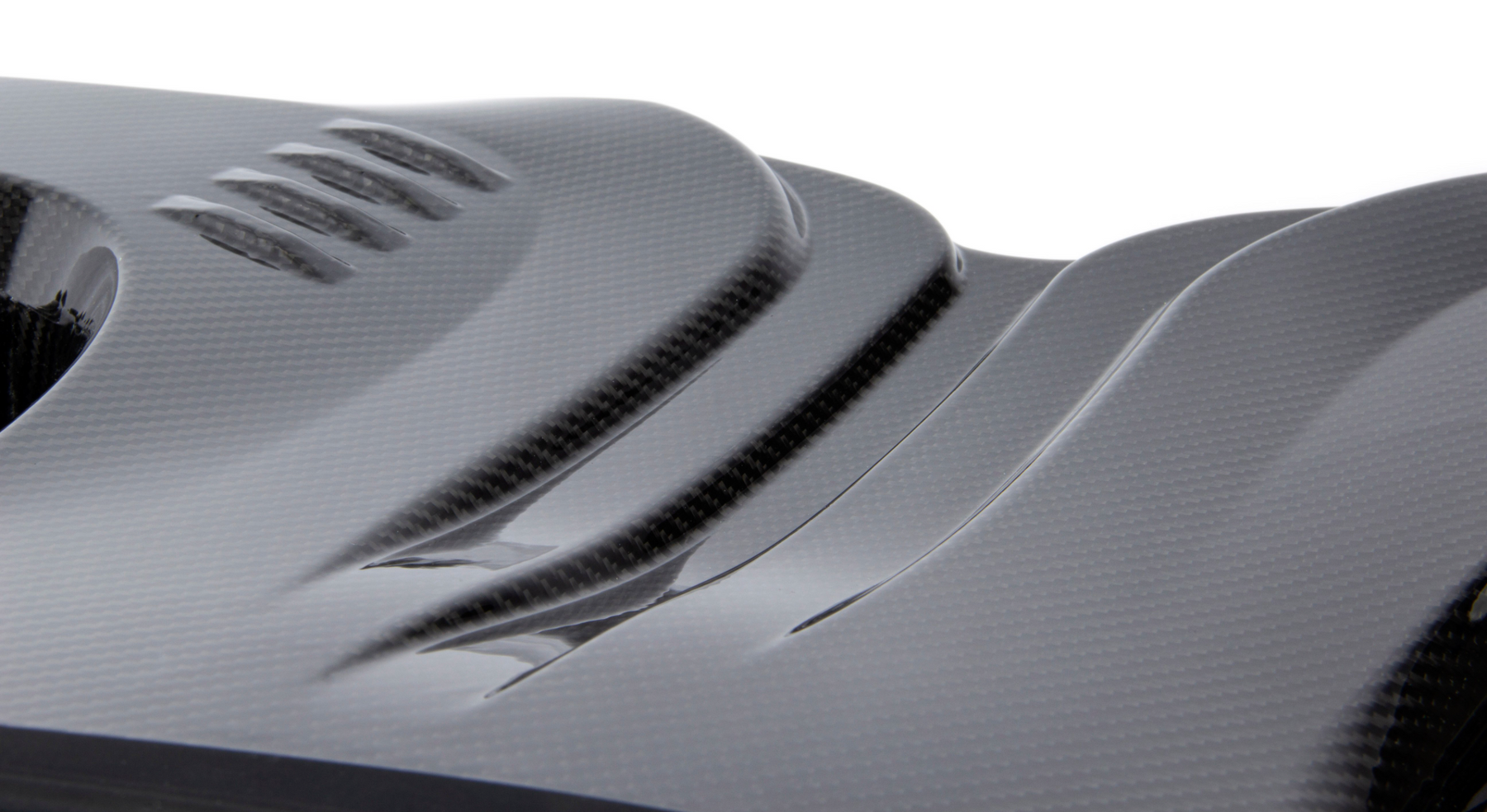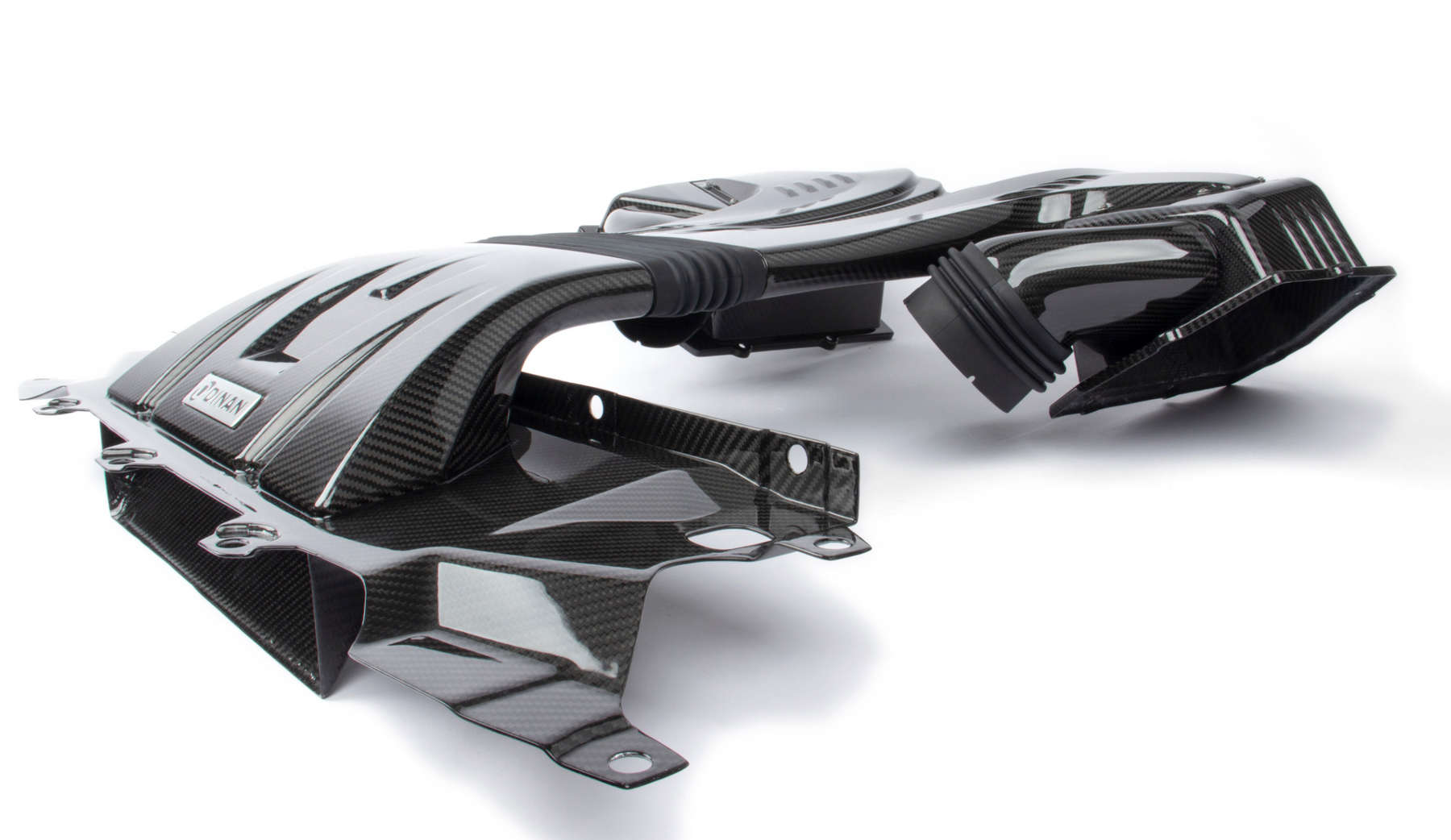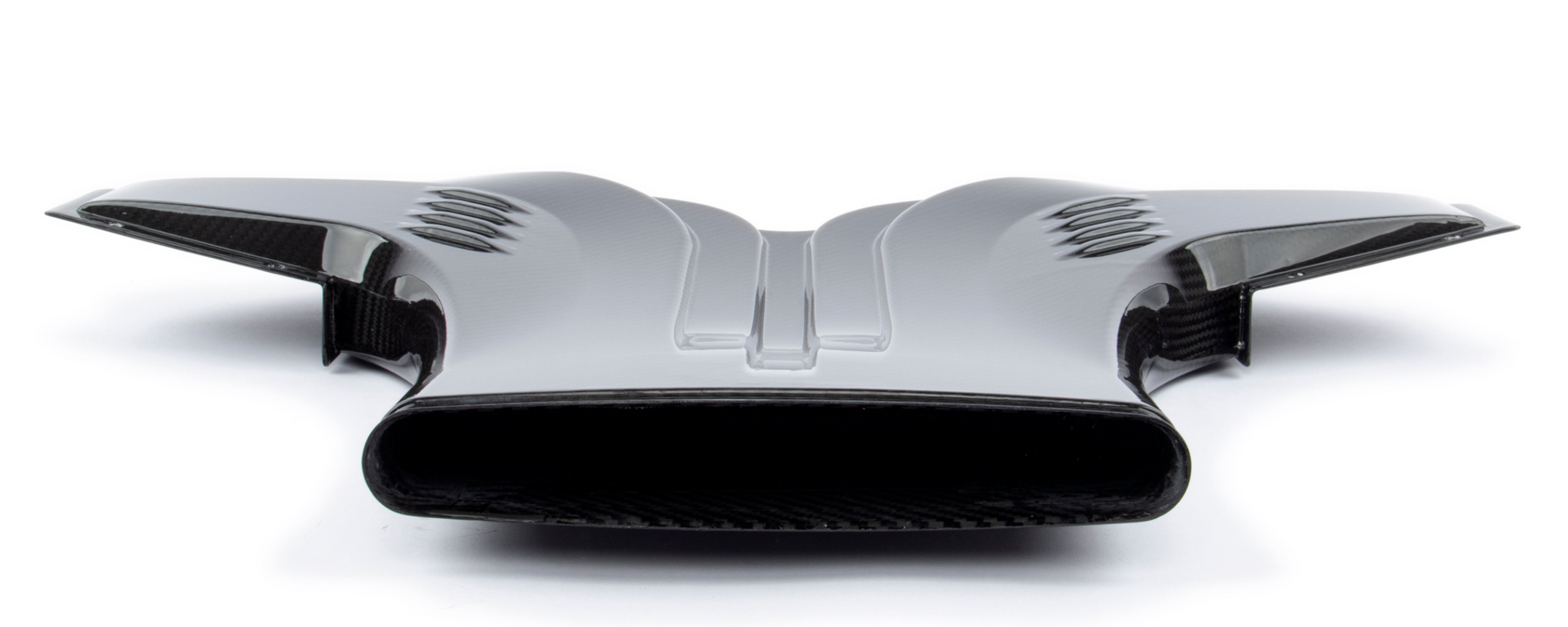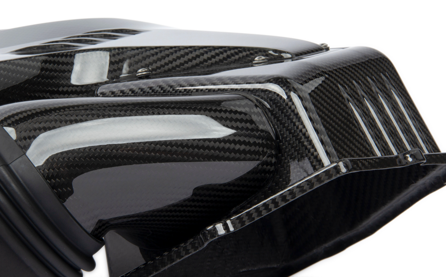 Center inlet/scoop doubles as a visually pleasing carbon fiber engine cover.