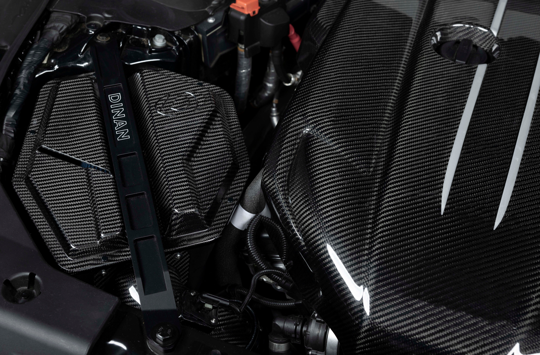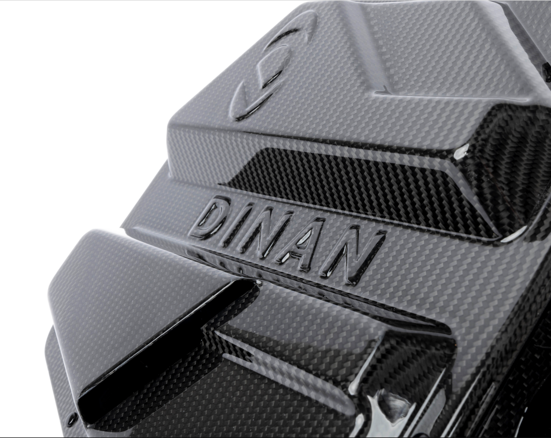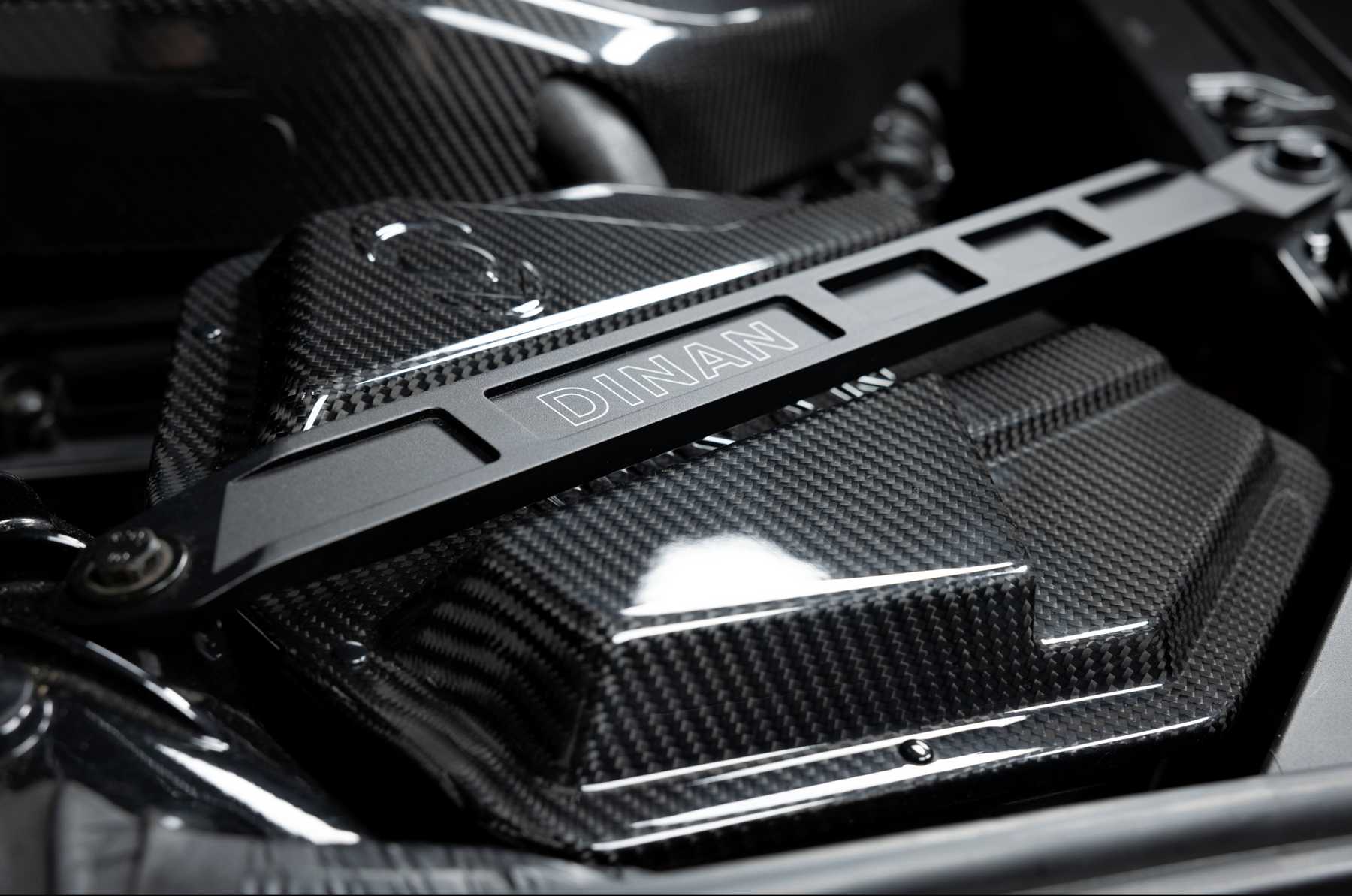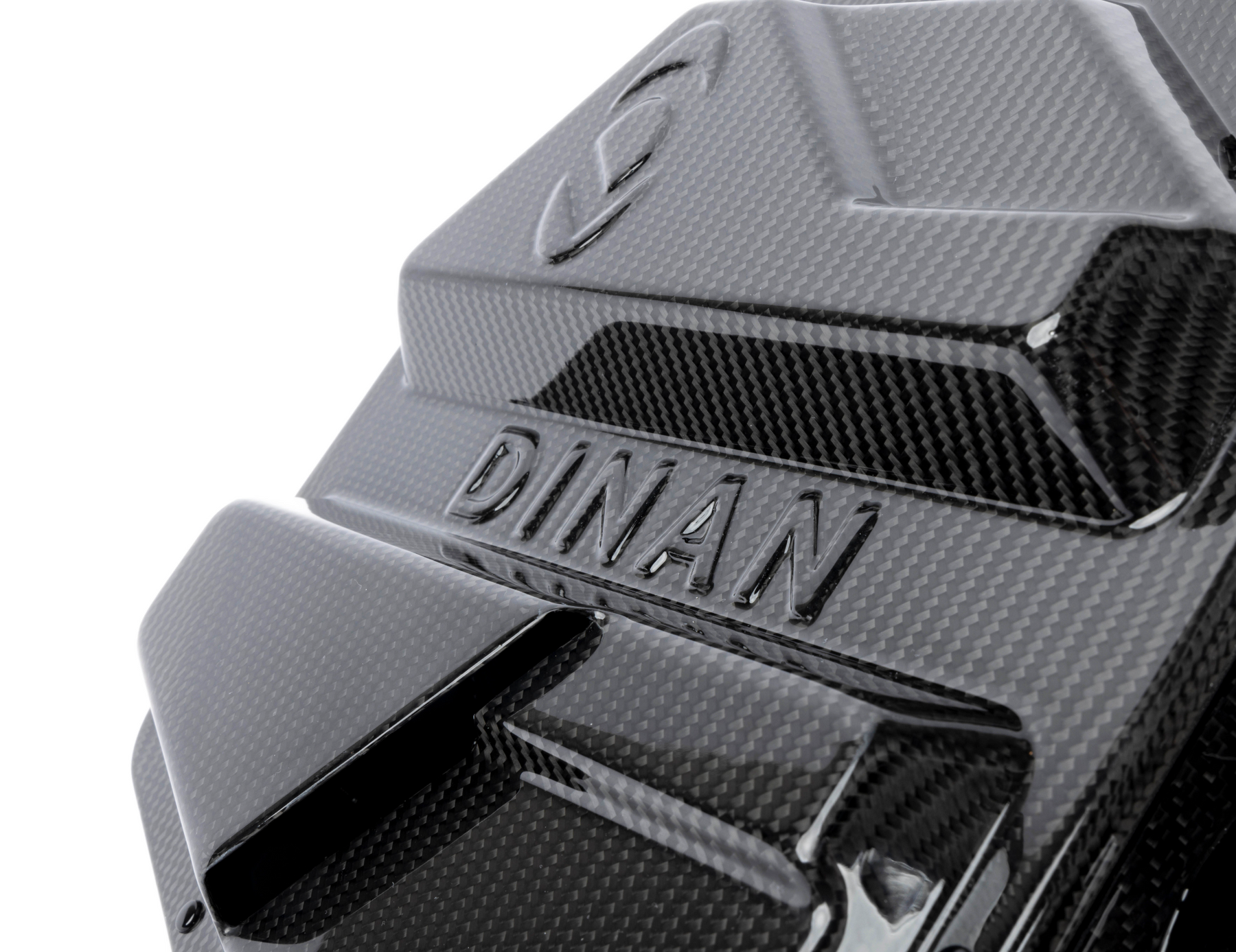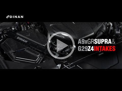 Both the Toyota GR Supra as well as the BMW Z4 are their respective brands answer to the modern 2-seater sports coupe delivering enhanced driving enjoyment in a compact and stylish frame. With aggressive organic lines used unabashedly throughout, they are unapologetic in their outward style to the point of nearing brashness. This character is limited to driving dynamics and external appearance however, with both the sound and under hood visuals not matching the colorful outer demeanor. The factory air box in particular is an uninspired design, albeit functional, and leaves substantial room for improvement in terms of flow and resulting power gains. It also purposefully includes an intake resonator whose sole purpose is the elimination of turbo/intake noises - the same noises that those in the performance world relish. The Dinan carbon fiber intake for the platform rights these wrongs and delivers an intake capable of flowing 58% more air than the stock system resulting in improved throttle response, additional power and the elimination of a potential roadblock when opting to pursue a high-powered build (upgraded turbo, fueling, etc). At the same time revealing a more aggressive, sporty carbon fiber appearance, and an increase in sound courtesy of the removal of the intake resonator and implementation of a semi-open design. To achieve the gains in flow that the Dinan intake delivers, the entire lower box of the system, and not just the lid, has been reworked and enlarged in an effort to make use of as much of the available real estate as possible within the engine bay. In turn, this allows a 40% larger, custom, free flowing filter to be housed within and maximum flow to be realized. However, a secondary inlet has always been desired by Dinan to effectively fill the volume of the enlarged air box and increased filter surface area. This desire led to a multitude of experiments being conducted on the effectiveness of a possible open-air inlet in the system. With different shapes, locations, and sizes of openings being tested, the goal was to ensure that the added secondary inlet did not cause any unwarranted side effects such as an increase in air temps in the system. This is commonplace with open-air intake systems where overheated engine bay air is employed in the intake tract. The results of these tests showed that the patterned openings present in the final iteration of the box located on the opposite side from the engine provided a perfect balance of additional volume to assist the factory inlet all the while not causing an increase in turbo inlet temperatures. This was the case regardless of testing conditions (single/multiple gear pulls, constant speed, 0-100mph runs, etc.). With more air being pulled into the system, throttle response is improved, and additional power is realized in the form of max gains of +13 WHP / +14 lb-ft of torque on an otherwise completely stock vehicle. Beyond stock or basic bolt-on equipped vehicles, the Dinan intake would expand the potential of the platform's power ceiling. Put simply, those striving to build a more potent and robust solution, complete with turbo and fueling upgrades, will be allowed to maximize the results without worry of the intake system being a limiting factor. Regardless of the level of the build, the secondary air inlets, as well as the sound slot present on the lid, allow the intake system to be more audible so the turbo spool and BOV can be appreciated. A stark difference from Dinan's traditional fully sealed systems where induction noise is not nearly as recognizable. Not to be outdone by the increased power and sound, the outwardly visible system is made of immaculate 2x2 gloss twill carbon fiber resulting in vastly improved under hood appeal. Joined by the aluminum Dinan strut braces and matching carbon fiber engine cover, the engine bay instantly becomes equally as showy as the exterior. A unified style, inside and out, with a bit of turbo attitude.