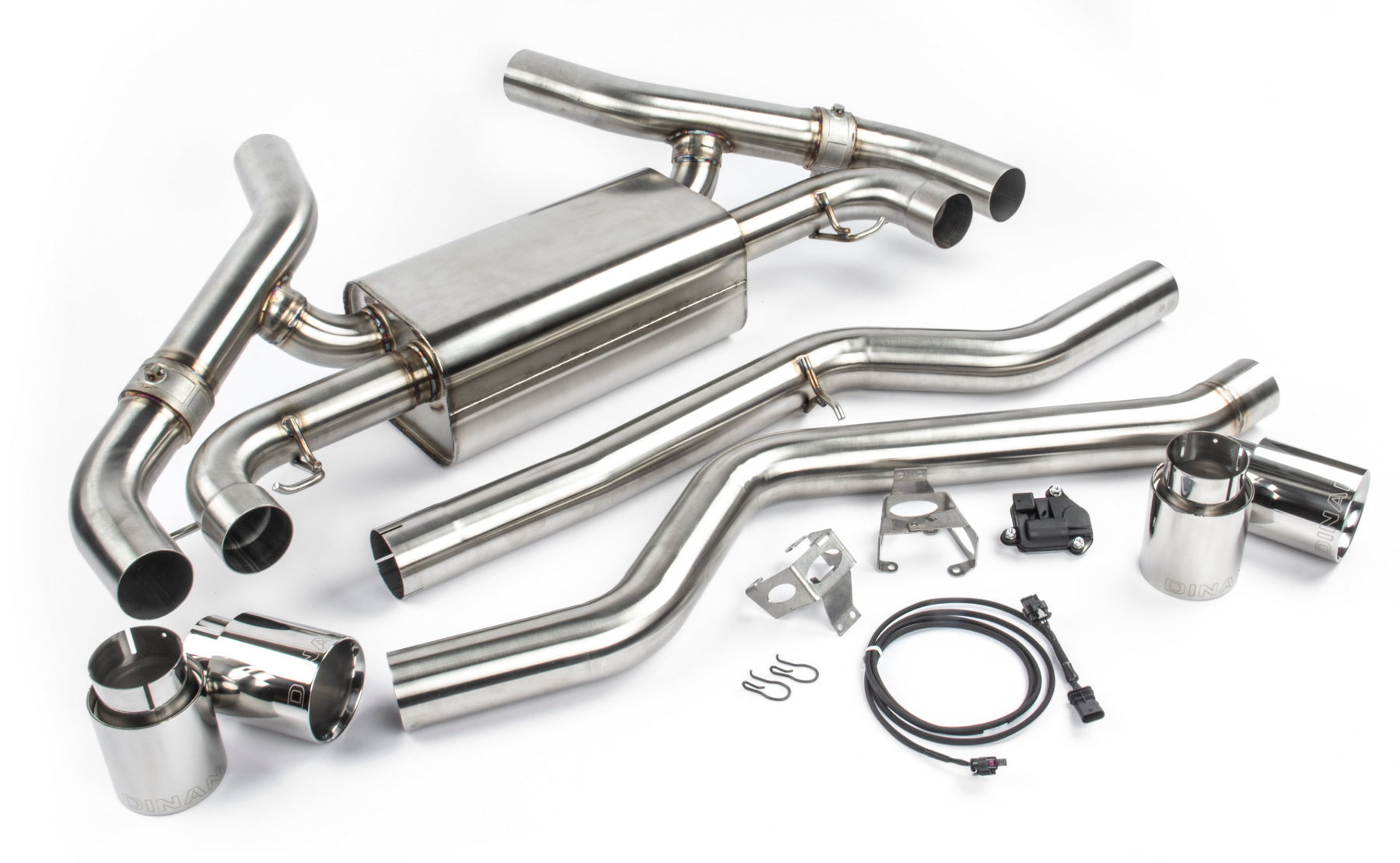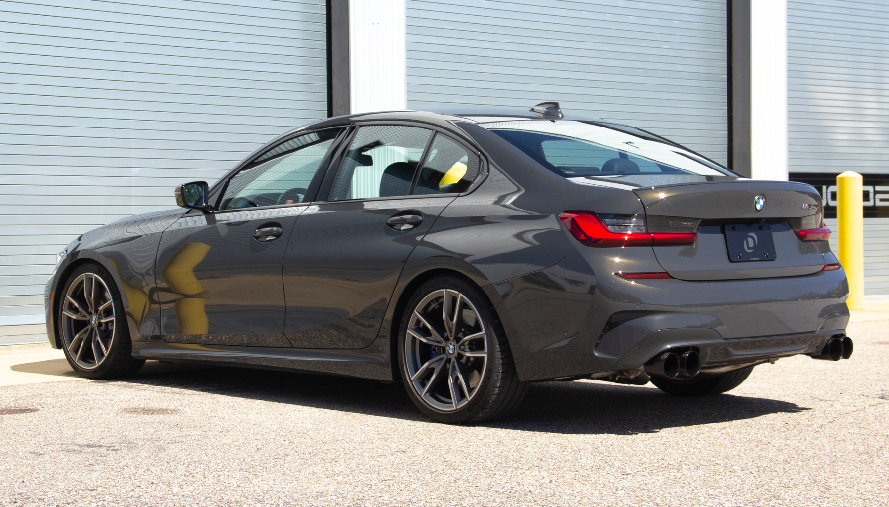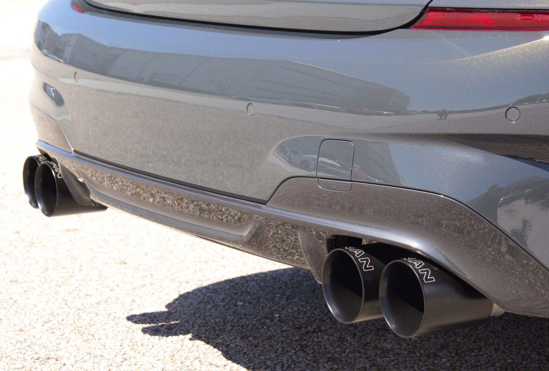 Quad exhaust tips have been a signature feature of the most powerful letter in the automotive sphere for quite some time. It is a hallmark of the brand that Dinan has long embraced, limiting its own quad tip usage to those M cars that already sported like tip quantity from the factory. That is… until now with the release of the Dinan axle back exhaust system for the G20 M340i and G2x M440i. While some may scoff at the feature being implemented into a "pseudo-M," the M340i/M440i, and the B58 engine platform, are extremely potent and worthy of such a distinction. The factory valance also accommodates the four massive 102mm tips perfectly, further cementing our opinion that the quad tips were destined to be on this performance model. Being numerous and big are not the only selling points to the tips however. Dinan has retained its signature straight cut tip design, safeguarding its unique and elegant styling position amongst a crowded marketplace full of angle cuts. With systems available with either black ceramic coated or polished clamp-on, and laser engraved exhaust tips, there is a version that is sure to meet your individual aesthetic needs. The use of quad tips also presented some additional challenges and fostered some innovation to the already visually impressive system constructed entirely of TIG welded and brushed T304 stainless steel. Confined to dual tips, the factory system utilizes only one exhaust valve and functions by eliminating the passenger side tip when the valve is closed, siphoning all gases through the muffler and out the driver's side tip for quieter operation. With the introduction of more pipes/tips, this methodology was not practical, or desired. In true Dinan M exhaust fashion, our talented engineering team decided that integrating a second valve to the system would garner the most favorable results in both symmetry and overall sound. The result is a system that incorporates larger 76mm tubing (vs 70mm stock) and allows freer flow through the entirety of the system but specifically to both outer pipes when the enlarged valves are open. The resulting flow and sound mimics an awe-inspiring straight pipe solution with a deeper and meatier tone, a defining element of all Dinan exhausts. In contradiction to the aggressiveness resulting from open valves, when the valves are closed, all gasses are forced into the muffler for sound deadening and exit the two inner tips. Regardless of valve position, the intimate nature of the interior is retained so conversation can continue without an excessively loud drone courtesy of numerous drone abatement technologies in the can. With the Dinan exhaust equipped on the M340i/M440i you get the best of both worlds; aggressive tone/sound and civility. A combination that is a paramount to any M exhaust, and now by virtue of tip count, the M340i and M440i. Welcome to the illustrious family.