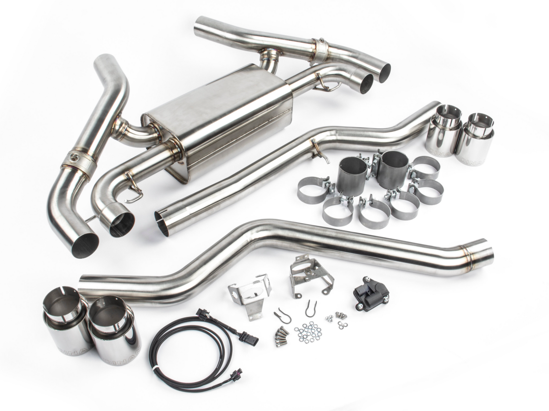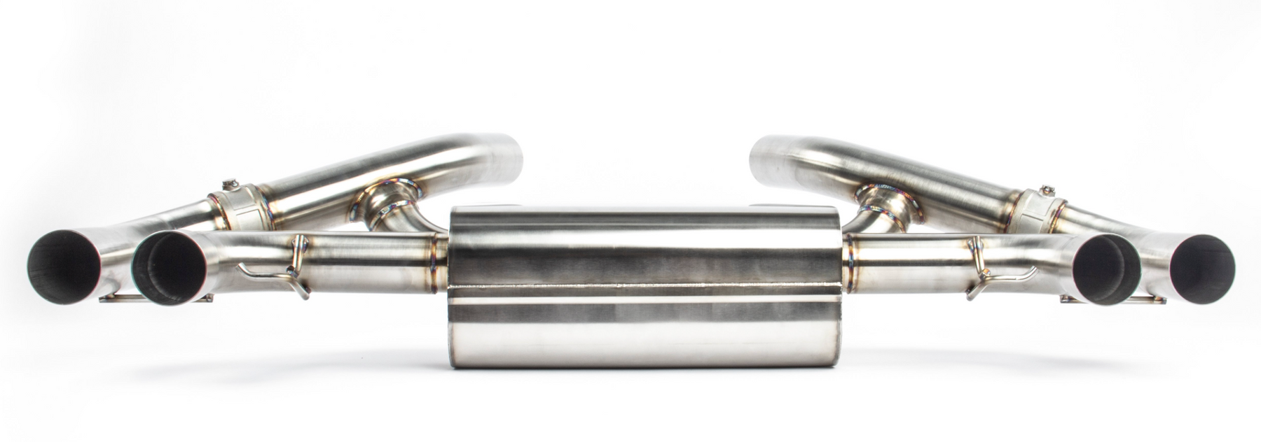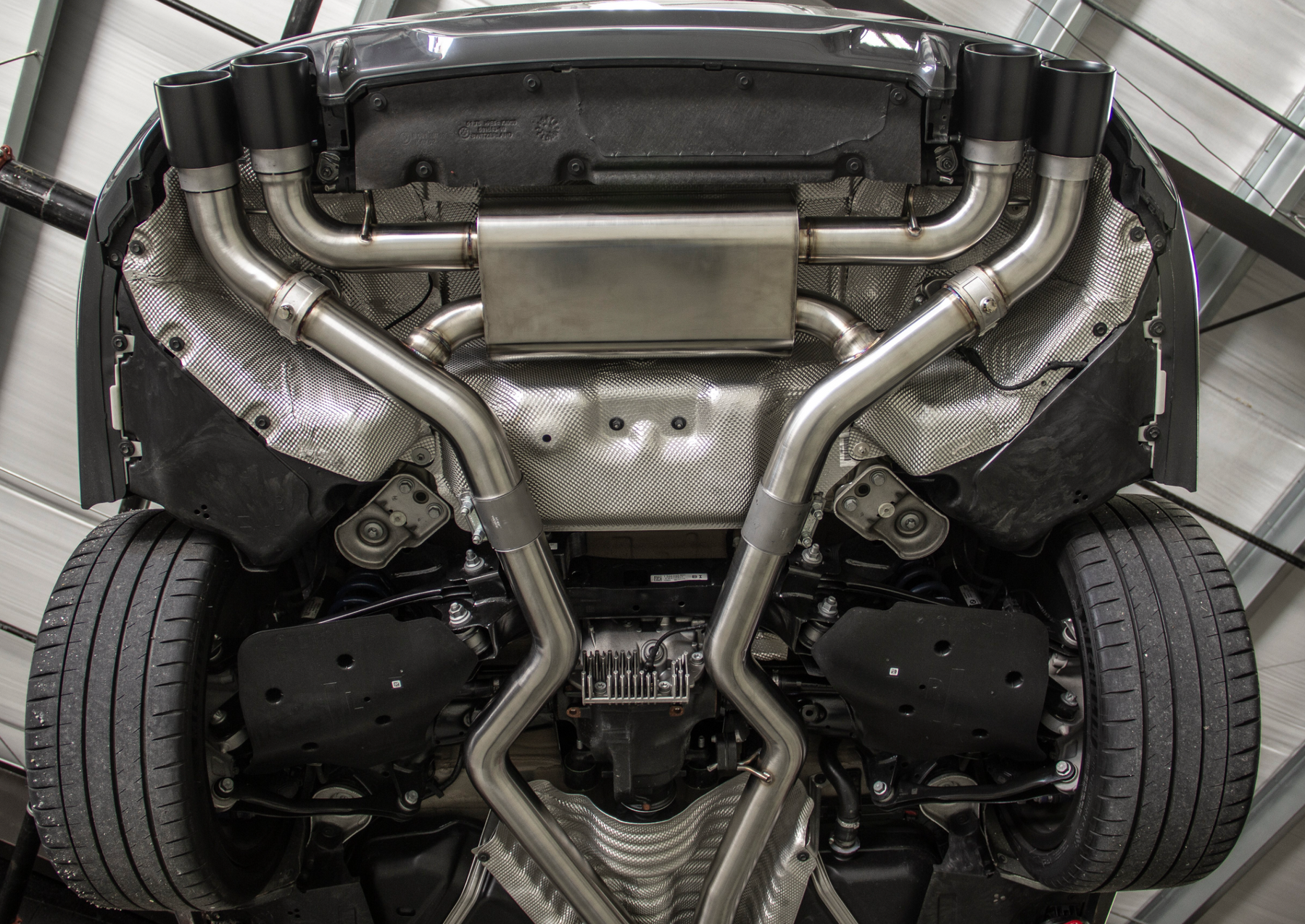 Quad exhaust tips have been a signature feature of the most powerful letter in the automotive sphere for quite some time. It is a hallmark of the brand that Dinan has long embraced, limiting its own quad tip usage to those M cars that already sported like tip quantity from the factory. That is… until now with the release of the Dinan axle back exhaust system for the G20 M340i and G2x M440i. While some may scoff at the feature being implemented into a "pseudo-M," the M340i/M440i, and the B58 engine platform, are extremely potent and worthy of such a distinction. The factory valance also accommodates the four massive 102mm tips perfectly, further cementing our opinion that the quad tips were destined to be on this performance model. Being numerous and big are not the only selling points to the tips however. Dinan has retained its signature straight cut tip design, safeguarding its unique and elegant styling position amongst a crowded marketplace full of angle cuts. With systems available with either black ceramic coated or polished clamp-on, and laser engraved exhaust tips, there is a version that is sure to meet your individual aesthetic needs. The use of quad tips also presented some additional challenges and fostered some innovation to the already visually impressive system constructed entirely of TIG welded and brushed T304 stainless steel. Confined to dual tips, the factory system utilizes only one exhaust valve and functions by eliminating the passenger side tip when the valve is closed, siphoning all gases through the muffler and out the driver's side tip for quieter operation. With the introduction of more pipes/tips, this methodology was not practical, or desired. In true Dinan M exhaust fashion, our talented engineering team decided that integrating a second valve to the system would garner the most favorable results in both symmetry and overall sound. The result is a system that incorporates larger 76mm tubing (vs 70mm stock) and allows freer flow through the entirety of the system but specifically to both outer pipes when the enlarged valves are open. The resulting flow and sound mimics an awe-inspiring straight pipe solution with a deeper and meatier tone, a defining element of all Dinan exhausts. In contradiction to the aggressiveness resulting from open valves, when the valves are closed, all gasses are forced into the muffler for sound deadening and exit the two inner tips. Regardless of valve position, the intimate nature of the interior is retained so conversation can continue without an excessively loud drone courtesy of numerous drone abatement technologies in the can. With the Dinan exhaust equipped on the M340i/M440i you get the best of both worlds; aggressive tone/sound and civility. A combination that is a paramount to any M exhaust, and now by virtue of tip count, the M340i and M440i. Welcome to the illustrious family.