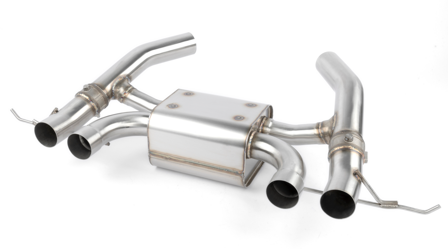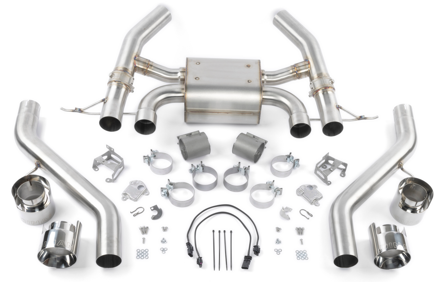 • Computer controlled exhaust valves are retained and limit noise during low-speed driving and open fully during high-load conditions