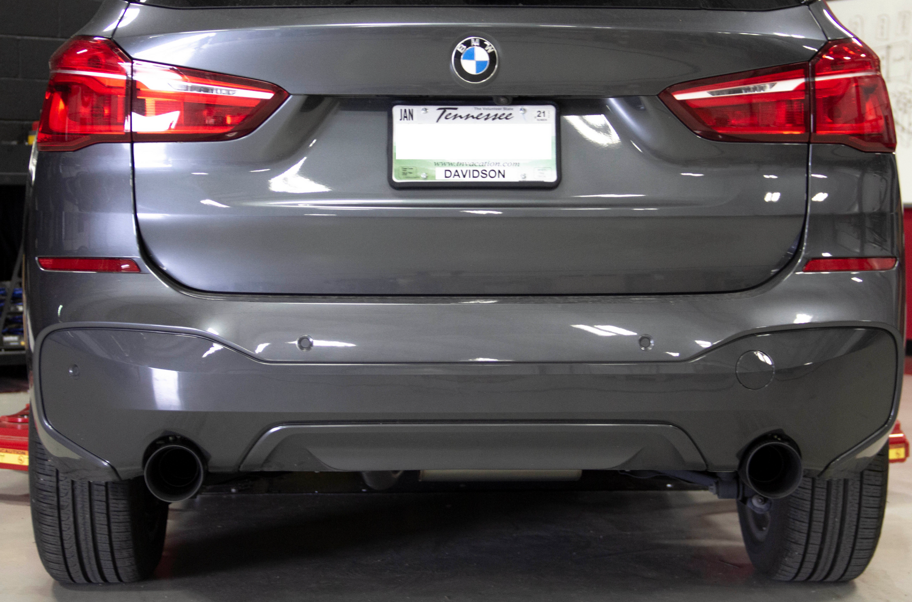 The F48 X1 and F39 X2 BMW crossovers are, by volume, one of the most successful lines in the BMW brand portfolio. That success capitalizing on those that want the additional cabin space, akin to an SUV, but without the huge sacrifice to fuel economy courtesy of the fuel efficient B48 4-cylinder engine. For a wide swath of the consumers in these vehicles that is enough and all that is desired. However, for a growing segment of the market, there are also those that want even more. Namely performance, and by association, sound, more commonly associated with the sportier B58 6-cylinder engine. From the factory the stock X1/X2 exhaust is largely silent in all modes which is a travesty for any those consumers that fit in the "more" category, but Dinan offers a solution that rights that wrong. The Dinan exhaust system offers a dramatically improved exhaust note that is not only louder but fuller and deeper as well. 70mm piping, free of hydroforming, is used throughout that allows freer flow to traverse the entirety of the system. The tubing is then fed into a streamlined muffler that is typical of all Dinan exhaust design and utilizes absorption technologies designed to improve exhaust flow and reduce back pressure. The combination results in mildly improved power output at the extreme top end of the power band and a great sporty sound complete with pops for additional aural gratification. Factory valve control is also retained to ensure the perfect blend of civility when not pushing the car and a bit of additional character when in it. Regardless of driving style or conditions the system is purposefully engineered to reduce low-RPM drone, so the cabin of the vehicle remains intimate and not drowned in an excessively loud tone. While sound is the primary reason for any exhaust purchase the styling and craftsmanship also play an important role for the discerning buyer. The Dinan X1/X2 (& MINI C'man JCW) exhaust has been skillfully crafted entirely out of T304 stainless steel and TIG welded for the best visual appearance and color. The entire system is then brush-finished to further guarantee an immaculate looking system out of the box. The attention to detail is not limited to parts of the system you can't see once the exhaust is installed but is also extended to the exhaust tips themselves. The Dinan exhaust sports enormous, dual 4" (102mm) clamp-on, double-walled, polished and laser engraved exhaust tips. Dinan has retained its signature straight cut tip design, safeguarding its unique and elegant styling position, amongst a marketplace dominated by angle cuts. The tips masterfully fill up and accentuate upon the factory cut-outs showcasing an extremely aggressive, yet refined, styling that will turn heads even before it is heard.