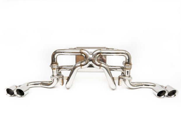 VALVES CLOSED: Exhaust gases are channeled through Fabspeed's signature 63.5mm Quad-Resonated X-pipe. We engineered it specifically to smooth out exhaust pulses for a sophisticated and exotic exhaust note while being as free flowing as possible. The tone is perfect for cruising around town or long highway drives.