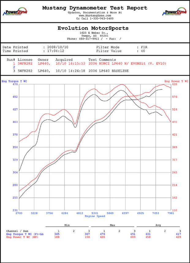 ExperTune Performance software upgrade improves horsepower, torque, and driving characteristics by reprogramming various sensor inputs, air/fuel ratios, and boost pressure (if applicable). Achieve maximum power from the Lamborghini Murcielago 6.2L and 6.5L without sacrificing driveability or reliability by optimizing the engine's performance.