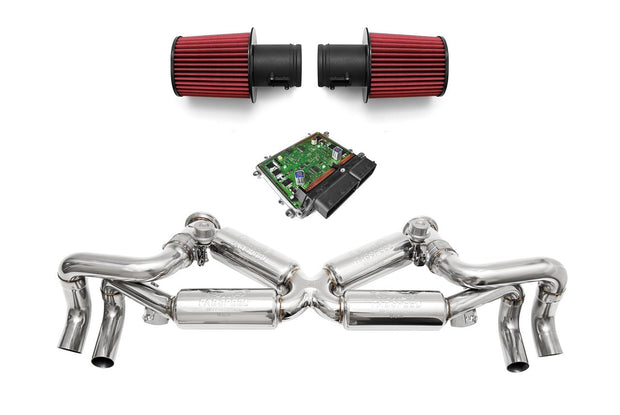 Complete high-performance exhaust and tuning solution for the Lamborghini Gallardo LP; includes Valvetronic Supersport X-Pipe Exhaust System, BMC F1 Replacement Air Filter, and optional ExperTune Performance Software