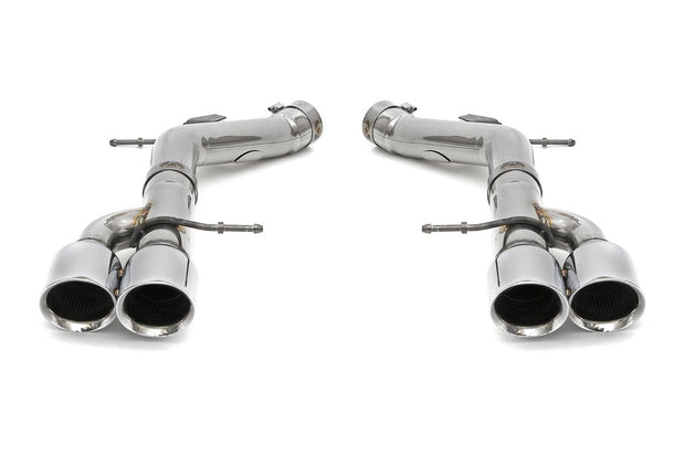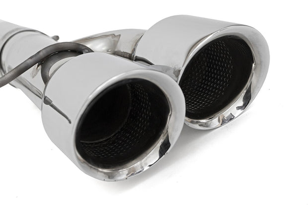 Replaces the heavy factory mufflers and tips with lightweight free-flowing straight-through pipes for increased power and sound; includes Deluxe Quad Style Tips in a polished chrome finish.