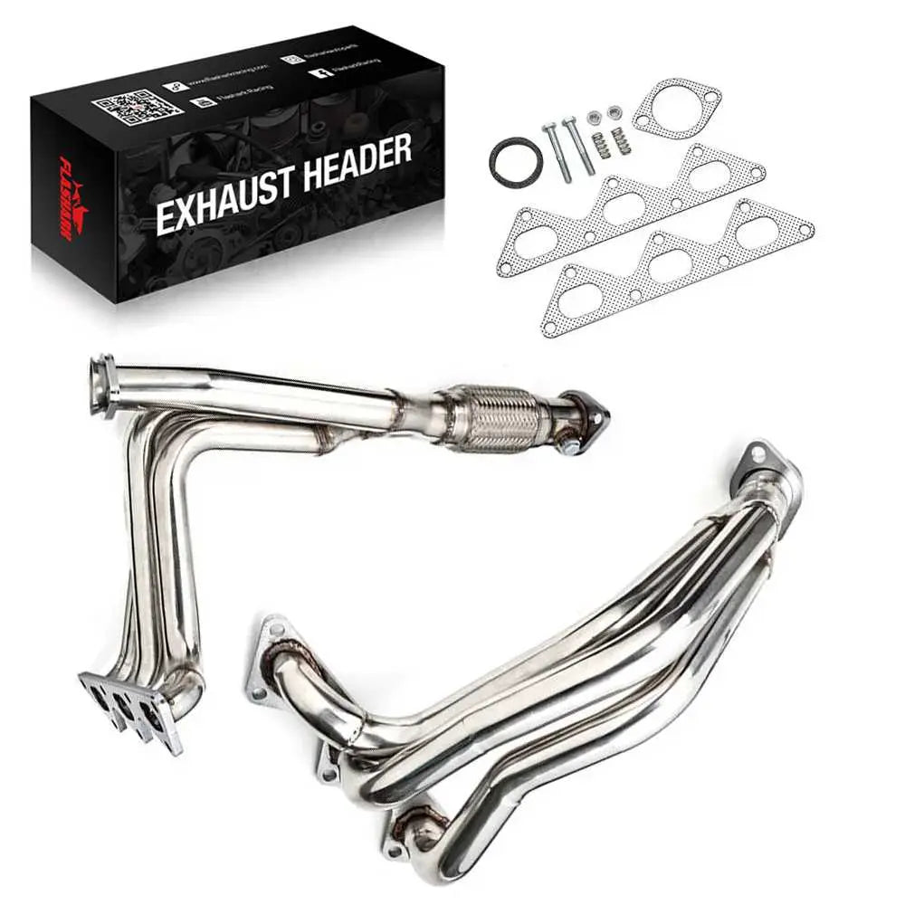 3000GT & Stealth headers are made from lightweight stainless steel, in contrast to the thicker iron used in exhaust manifolds. Headers are longer and more efficient, helping to reduce back pressure and improve exhaust flow, which results in more horsepower and better engine performance. Upgrading to exhaust headers not only enhances engine performance but also improves exhaust sound. FLASHARK's headers are designed for a direct bolt-on installation—no modifications needed, making them an easy and effective upgrade for your 1991-1999 Mitsubishi 3000GT or Dodge Stealth.