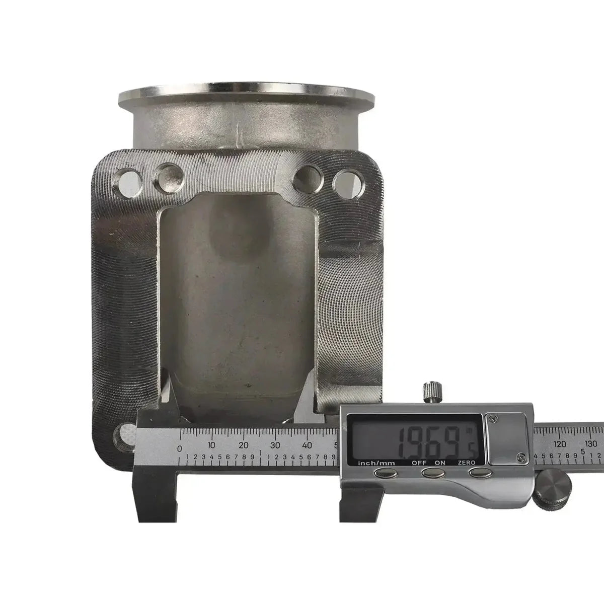 Up and Forward Stainless Steel Headers Huge 1 3/4" Stainless Primary Tubes (true 1 3/4 unlike the others listing the same header by multiple companies with multiple sizes) 7/16" Thick Flanges 3" V-Band Collectors CNC Mandrel Bent Pipes for Excellent Flow / Professionally Tigged Welds 4 to 1 Header Design to Create a Compact Package for Universal Applications T3 : hole to hole 45*86mm T4 : hole to hole 70*83mm V-Band Flange: 80mm ID , 93mm OD Turbo Elbow Adapter T3 T4 to 3" V-Band SS304 304 Stainless Steel Cast and Machined Adapter, with Tight Radius. Works for Many Turbo Applications. V band Flange Allows Rotation of the Turbo At Any Angle. Flange Threads Size: 4 M10x1.5 Holes