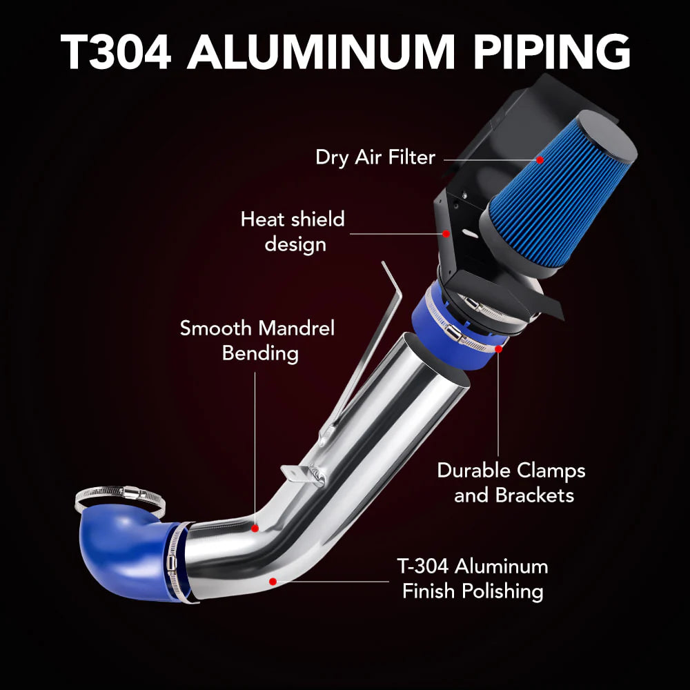 The vortec air intake kit can help your engine to draw more cold air resulting in better throttle response and higher explosive horsepower outputIntake pipe made by light weight T-304 aluminum w/polished Allow maximum airflow through the stock manifold system and Intense deep sporty Sound Improve throttle response throughout low and mid RPMFilter is upgraded to high quality washable and reusable cone air filter This vortec air intake kit will increase 7-10% of Horsepower and 6-8% of Torque Easy to install and easy to fit with simple tools No additional parts will be needed for installation after you purchase this kit All mount accessories are included, exactly the same as picture shown