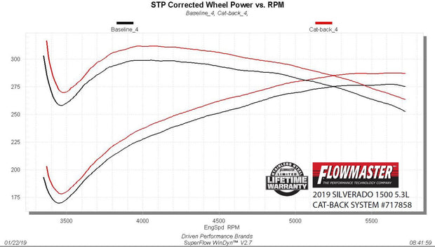 Introducing our new FlowFX® Cat-back exhaust system for the 2019-2021 GM Silverado/Sierra 1500 with the 5.3L engine. The performance exhaust system fits both 2 and 4-Wheel drive models with 148 or 157-inch wheelbases and is manufactured from 409S stainless steel for years of trouble-free service. Features include a 3.00-inch inlet pipe leading into a FlowFX "straight-through" muffler for great sound and maximum performance. The 3.00-inch mandrel-bent tailpipe exits out behind the rear passenger side tire and is finished off with large 4.50-inch diameter black ceramic coated 304S stainless steel tip, giving your Silverado/Sierra that custom look that goes hand in hand with the deep performance sound of the FlowFX muffler. The system uses all the factory hanger locations and connections for an easy installation that you can do at home. Includes detailed instructions and all necessary hardware.