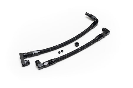 -10 feed and -8 return lines allow any triple pump system to operate without restriction.  However, -8 feed/return may be used if you're running three small fuel pumps (i.e. GSS342) or if your fuel system choice was marginal over whether to choose a dual or triple setup.  So, if you're making 1100 rwhp on E85 (which is possible on a dual pump setup if your build is very efficient) but you chose to go with a triple pump setup, we would suggest a -8 feed/return since you don't need every ounce of performance out of a triple pump setup.