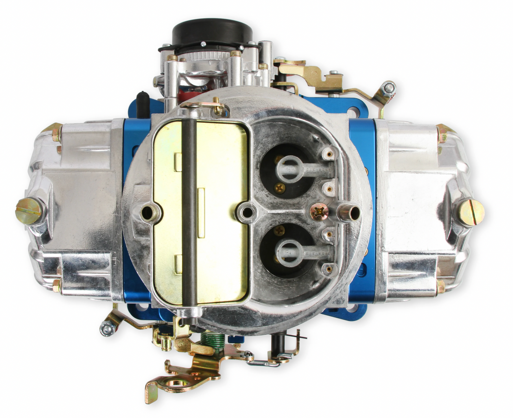 Holley Double Pumper® carburetors are a perfect performance upgrade for hot street cars and race vehicles. Double Pumper carburetors are an American icon when it comes to performance carburetors. From their roots as the premier carburetor on many factory muscle cars to powering thousands of vehicles across the finish line, the Double Pumper is a great choice whether you are burning up the street or the quarter mile. The Ultra Double Pumper™ Carburetors feature all aluminum construction and are equipped with metering blocks and a base plate made from 6061-T6 billet aluminum. They weigh in at approximately 5 lbs. less than a comparable zinc carburetor. The new Ultra Double Pumper Carburetors have an enhanced fuel curve for optimum performance, with many more features such as aluminum construction; anodized billet aluminum metering blocks and base plate; 4 corner idle for precise idle control; dual accelerator pumps for additional fuel under initial acceleration; mechanical secondaries for great performance; clear fuel level sight plugs for easy, no mess fuel level adjustments; Ford automatic transmission kickdown for use on popular Ford transmissions; four vacuum ports for all necessary vacuum accessories; and for the first time on a Double Pumper, factory pre-set electric choke for easy, fast cold start-ups. The clean, polished look coupled with Blue metering blocks and throttle body will certainly set your ride apart whether you are at the show or track.