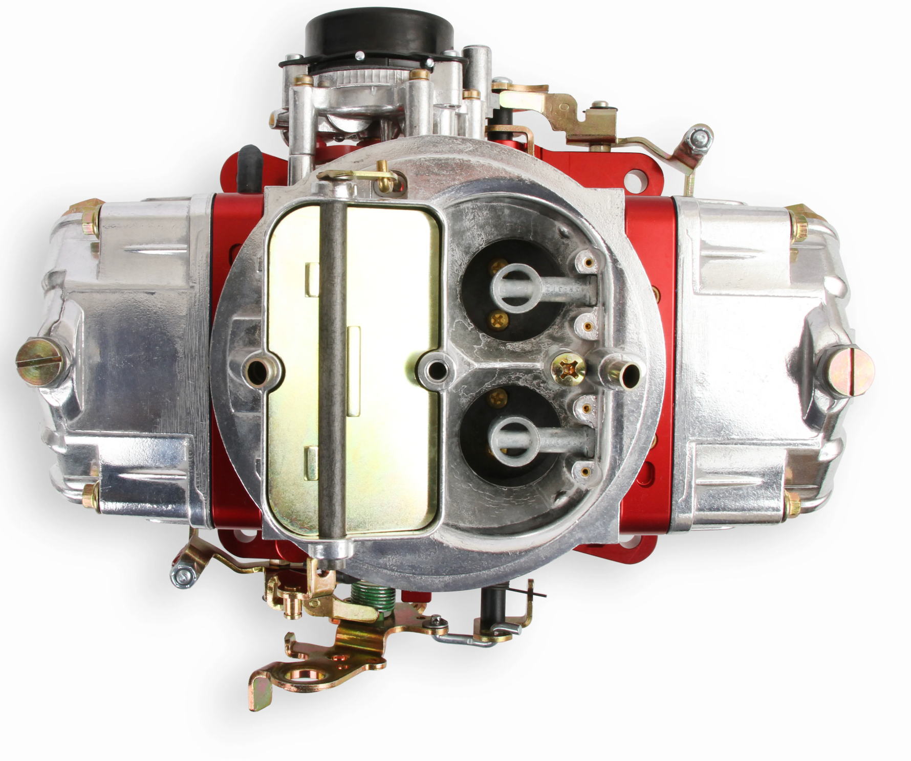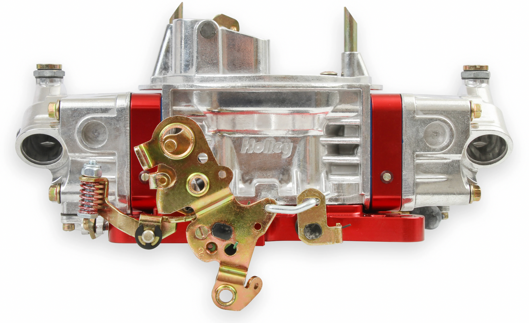 Holley Double Pumper® carburetors are a perfect performance upgrade for hot street cars and race vehicles. Double Pumper carburetors are an American icon when it comes to performance carburetors. From their roots as the premier carburetor on many factory muscle cars to powering thousands of vehicles across the finish line, the Double Pumper is a great choice whether you are burning up the street or the quarter mile. The Ultra Double Pumper™ Carburetors feature all aluminum construction and are equipped with metering blocks and a base plate made from 6061-T6 billet aluminum. They weigh in at approximately 5 lbs. less than a comparable zinc carburetor. The new Ultra Double Pumper Carburetors have an enhanced fuel curve for optimum performance, with many more features such as aluminum construction; anodized billet aluminum metering blocks and base plate; 4 corner idle for precise idle control; dual accelerator pumps for additional fuel under initial acceleration; mechanical secondaries for great performance; clear fuel level sight plugs for easy, no mess fuel level adjustments; Ford automatic transmission kickdown for use on popular Ford transmissions; four vacuum ports for all necessary vacuum accessories; and for the first time on a Double Pumper, factory pre-set electric choke for easy, fast cold start-ups. The clean, polished look coupled with Red metering blocks and throttle body will certainly set your ride apart whether you are at the show or track.