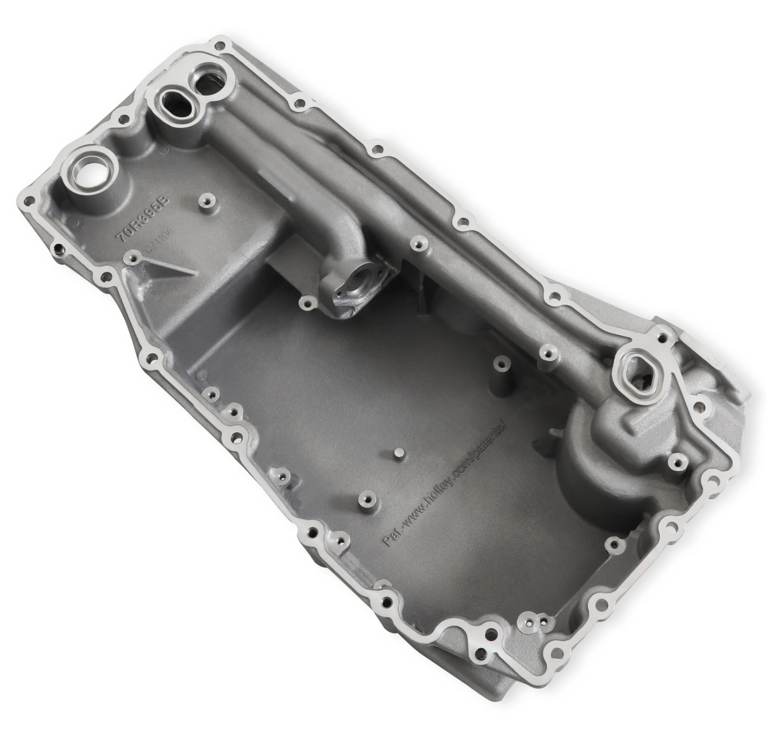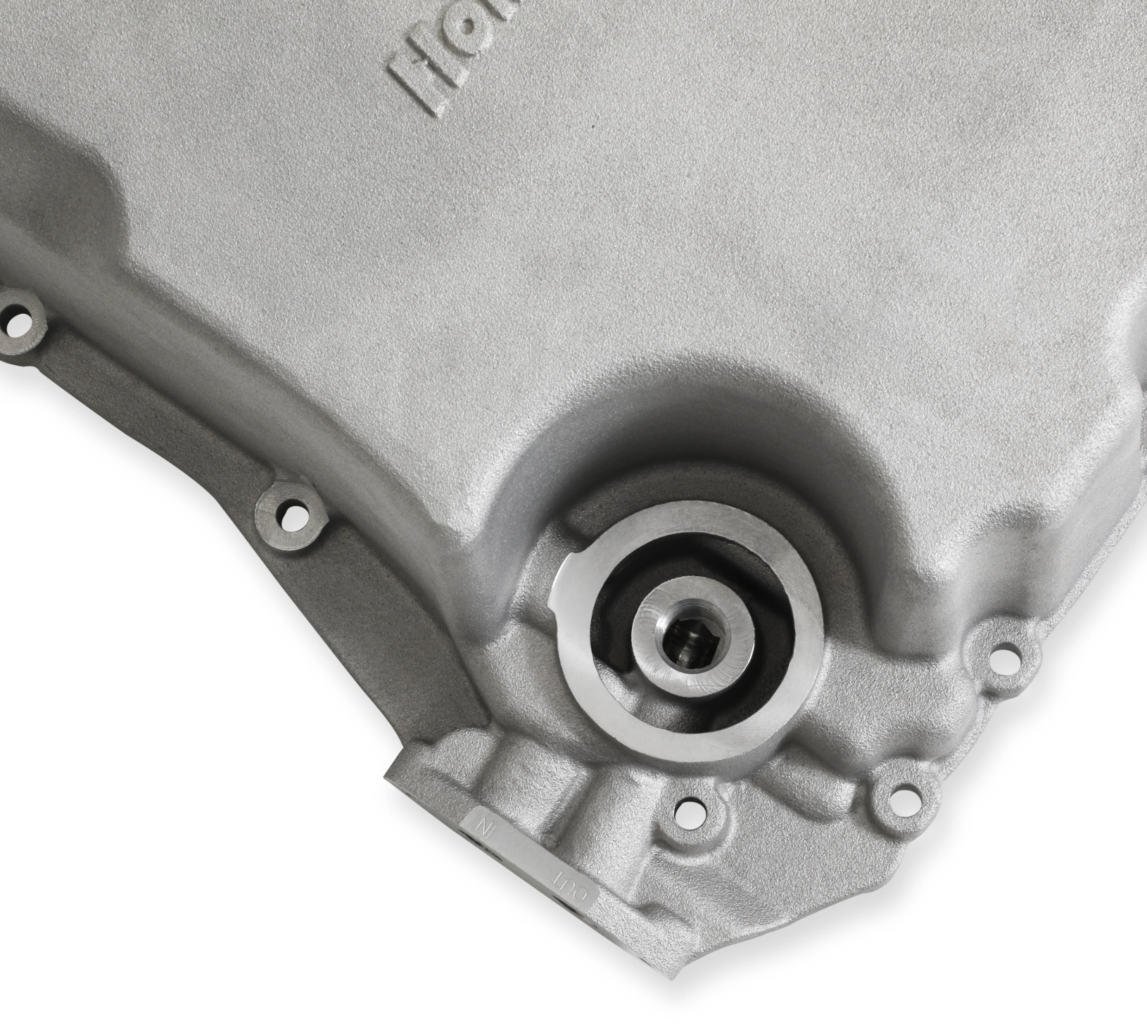 OE style cast oil pan design with 6.5 quarts oil capacity (with filter) and 1/2-inch NPT turbo drain-back port