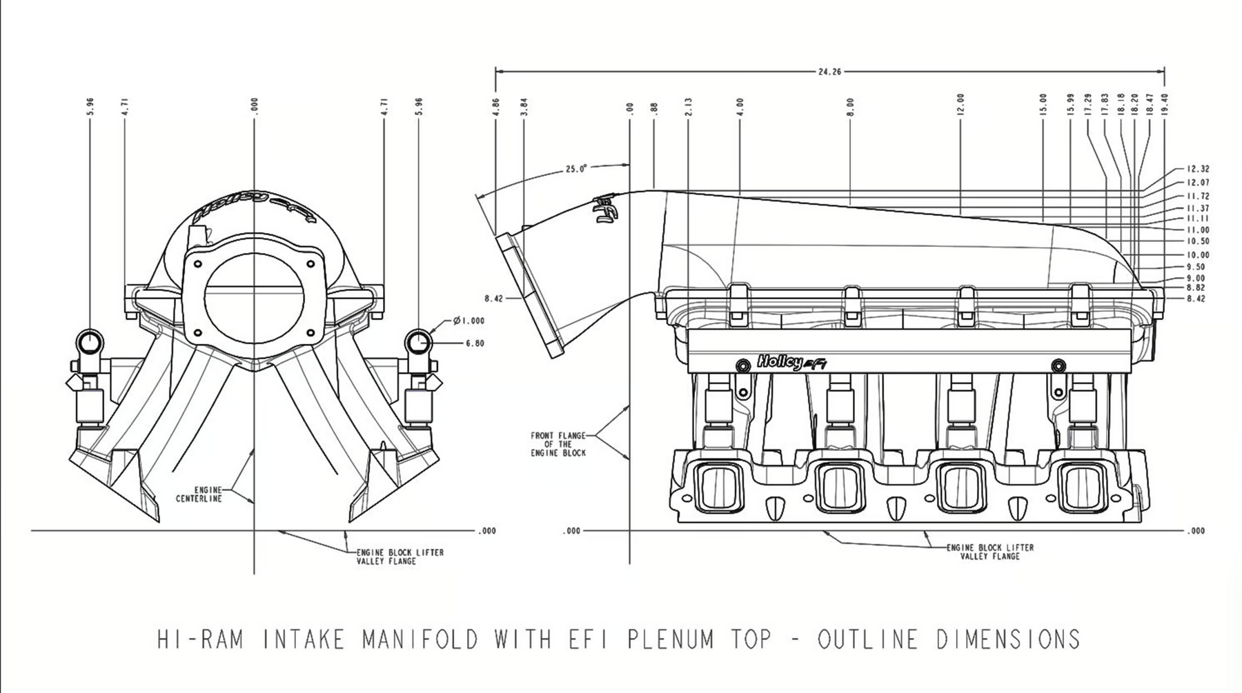 Base Plenum Top Mounting Flange Height – 8.42” to the lifter valley cover flange on engine block.