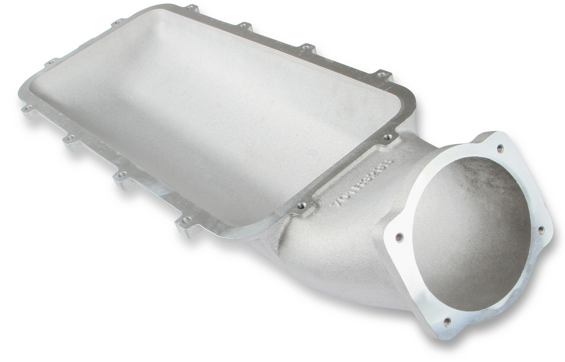 • Low height to aid the packaging of a plenum mounted air-to-water intercooler in a top-feed configuration or to fit under a stock or mildly modified hood in the front-feed configuration