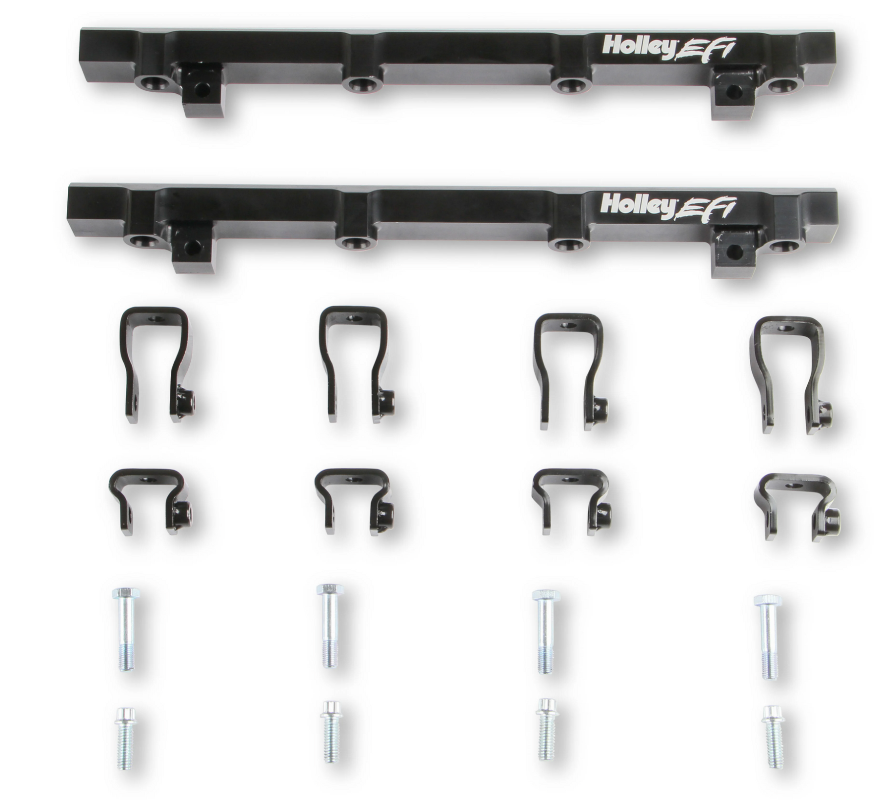 • High volume fuel rails and mounting hardware included with ¾”-16 o-ring ports (8 AN)