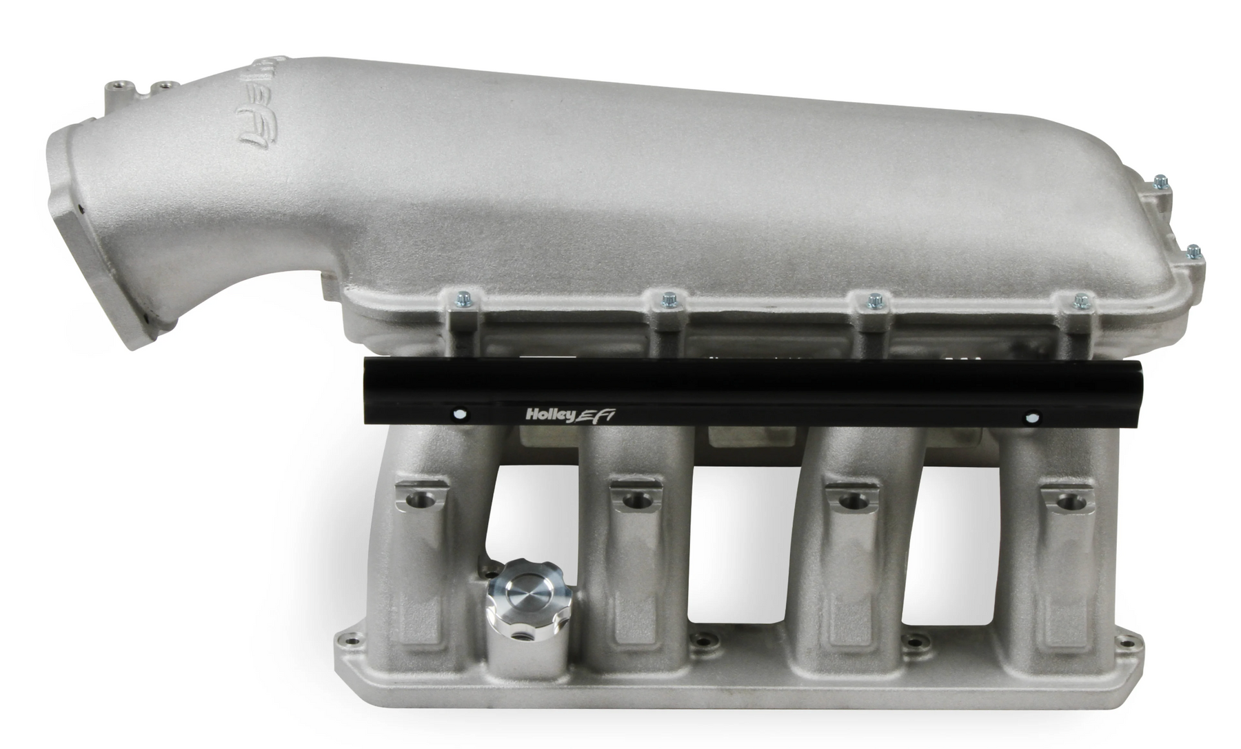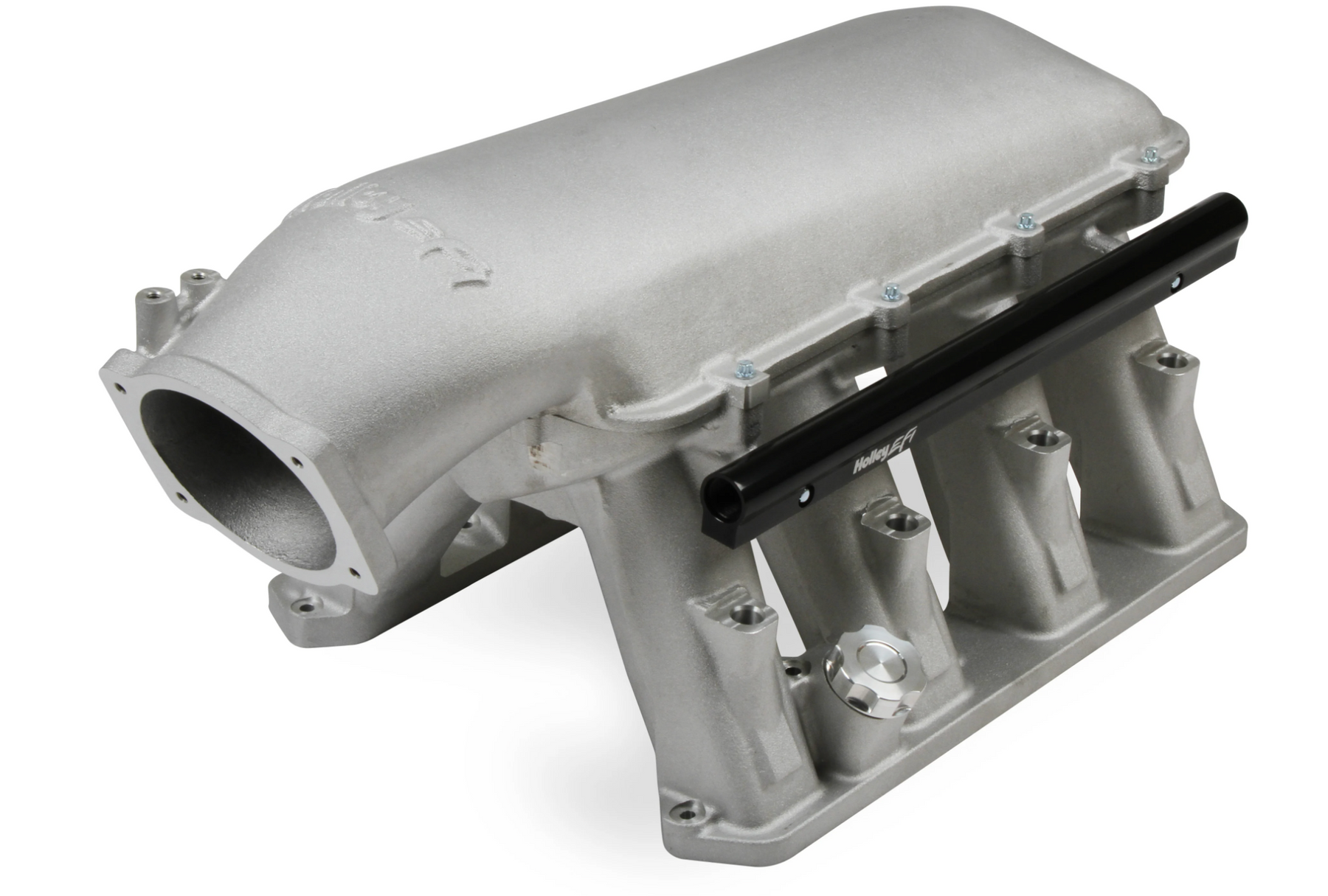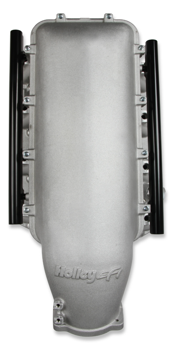 Add even more power to your Gen III Hemi engine with a Holley Hi-Ram intake manifold. This cast intake manifold has large intake ports - fits 2009-up 5.7L, 2005-2010 6.1L & 2011-up 6.4L engines. The Holley Hi-Ram intake manifold is for high-performance applications where induction system height is not limited. Using this Hi-Ram intake with high flowing Gen III Hemi cylinder heads has outstanding potential for naturally aspirated & forced induction applications. Aggressive, bold, race-bred styling will make bad intentions clear for drag race, muscle car, marine, off-road, sandrails, pulling trucks, track, street-rod applications and more! The base is designed to be modular in configuration to accept a wide range of EFI tops and to be attractive to builders and fabricators as the foundation for custom induction systems. Runner length and the tapered cross-section designed to perform well for a wide range of engine configurations. The EFI fuel rails are machined for -8AN O-ring fittings with passages large enough to accommodate high fuel flow and dampen pressure pulsations in the fuel system and come standard with EFI Hi-Ram kits. Intended for use on naturally aspirated, forced induction, or nitrous engines in the 5.7 to 7.2+ liter range, max power at 7500-8500 RPM.
