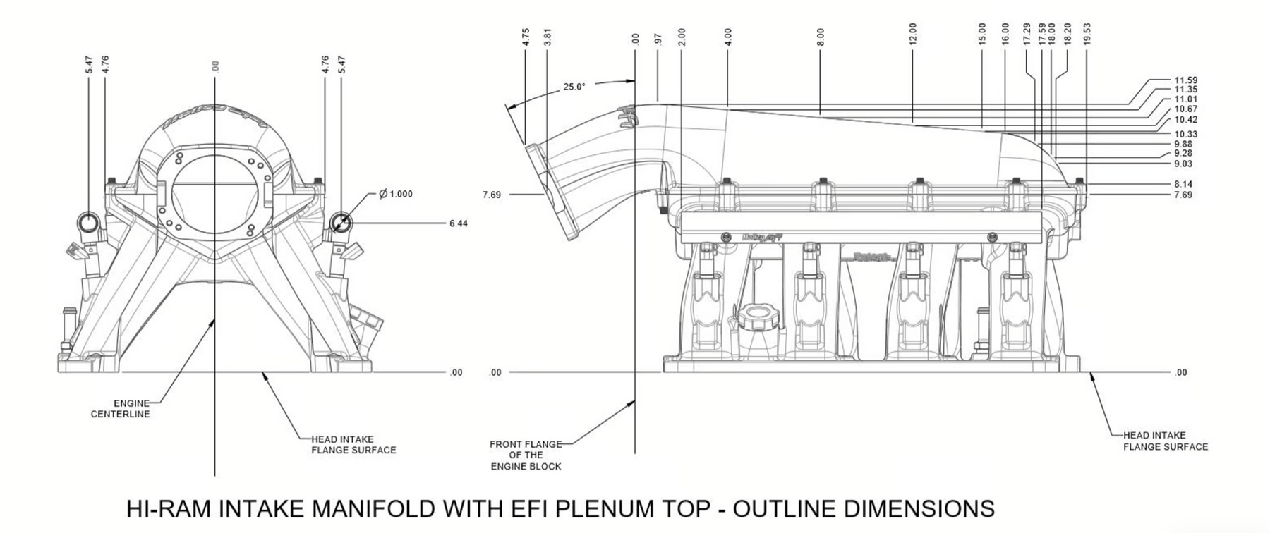 Fits Gen III Hemi Engines w/ Large Intake Ports (1.70” Height x 1.88” Wide) – fits 2009-up 5.7L, 2005-2010 6.1L, 2011-up 6.4L)