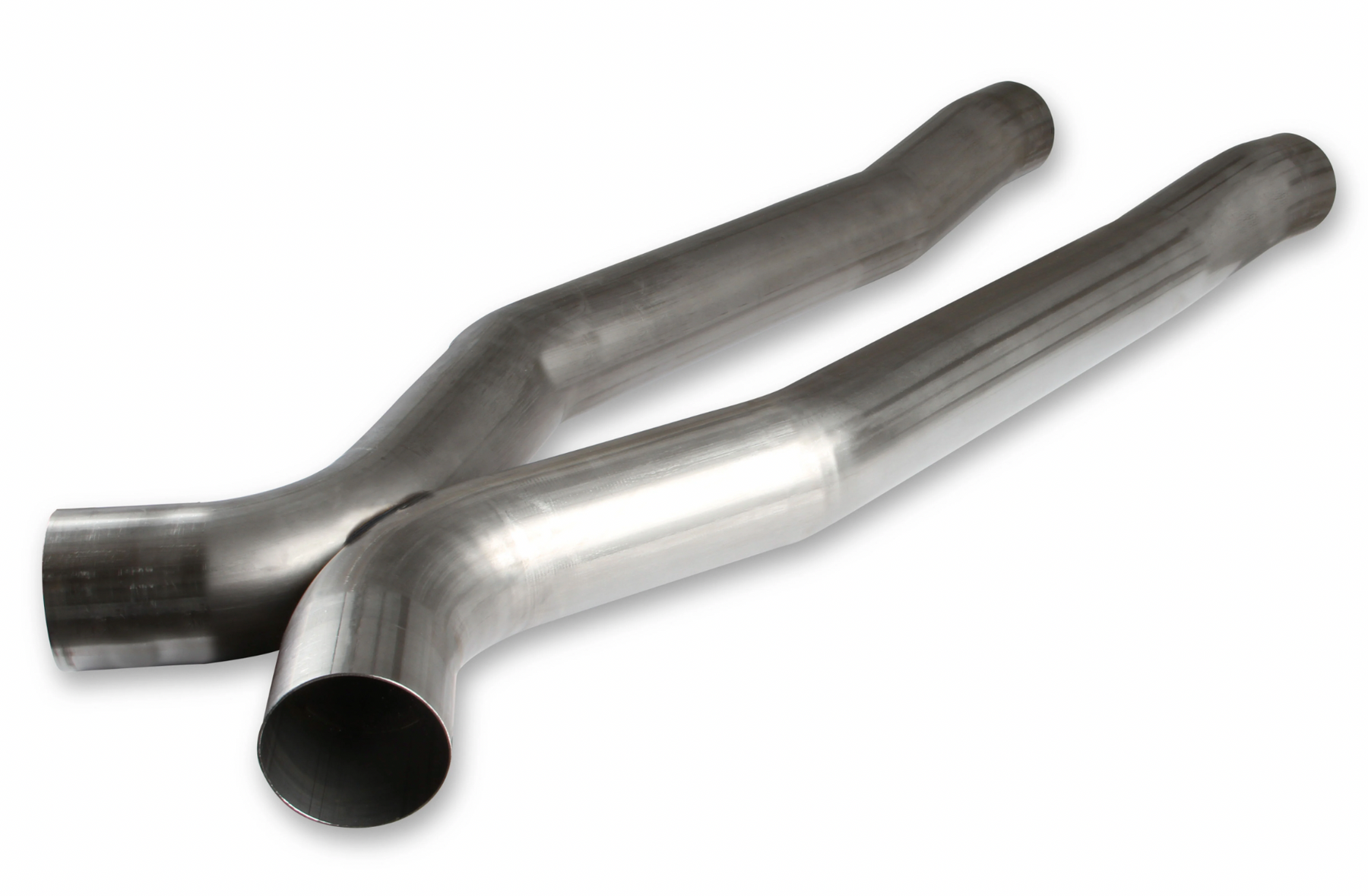 Extended length X-pipe connection tubes provide additional material for attaching to existing headers, catalytic converters, or exhaust manifolds