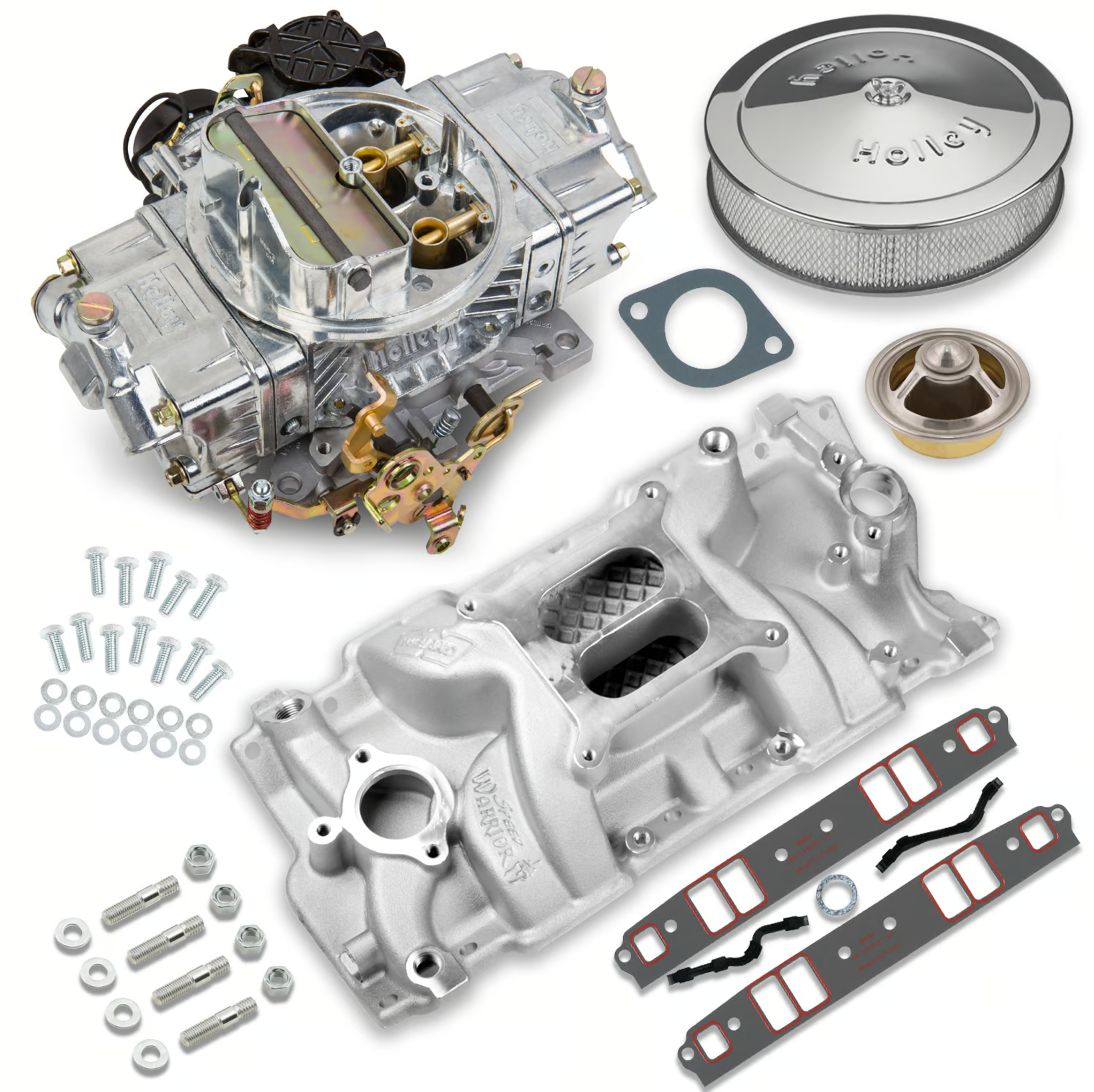 We have combined the Street Avenger carburetor and intake manifold into a kit form that includes all of the gaskets, bolts, and an air cleaner for a complete installation. Street Avenger carburetors are known to bolt on right out of the box and have great features such as a quick change vacuum secondary for easy fine tuning; optimized street calibrations; four vacuum ports for all necessary vacuum accessories; factory preset electric choke for easy start ups; built-in fuel filters; and an included fuel line kit so there are no unnecessary trips back to the parts store. The Avenger series are the first carburetors to have a limited lifetime warranty. With a great warranty like that and the included comprehensive instruction manual, you can count on years of worry free service.
