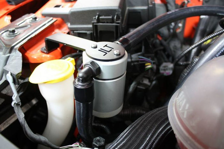 During the process of venting crankcase pressure back through your intake track, large amounts of oil, in the form of vapors, intake tube, intake manifold runners and even dilute your gas, lowering its octane level. This happens on all engines and is even worse with forced inducted vehicles (supercharged and turbocharged) as crankcase pressures are increased. To combat this, we have developed an oil separator of our own design. Milled from solid billet aluminum this is a rock-solid piece. It has a knurled tank base for easy removal to drain the spent oil and an O-ring seal to prevent any leaks.
