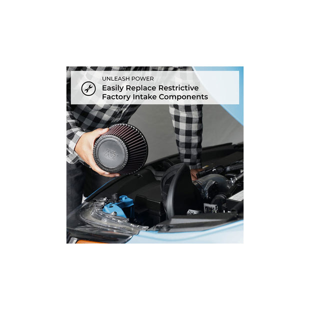 - Replaces factory air filter and intake tube