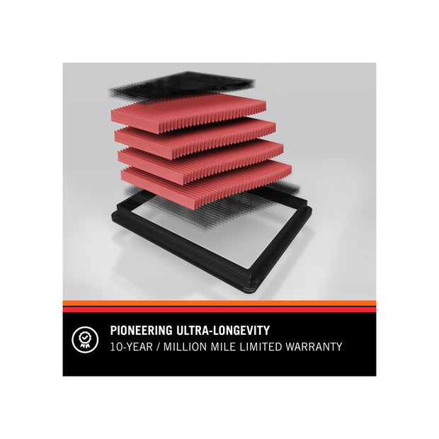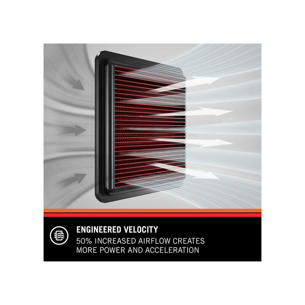 K&N® washable, reusable High-Flow Air Filters™ feature a state-of-the-art design of layered, oiled cotton media engineered to improve airflow and capture contaminants, and are designed to provide an increase in horsepower. Each performance air filter is reusable, engineered to last for the entire lifespan of your vehicle, and backed by K&N’s 10-Year/Million Mile Limited Warranty. K&N drop-in replacement filters are designed to install easily into your factory air box. Upgrade today and start enjoying superior airflow and superior performance from K&N’s most popular product!
