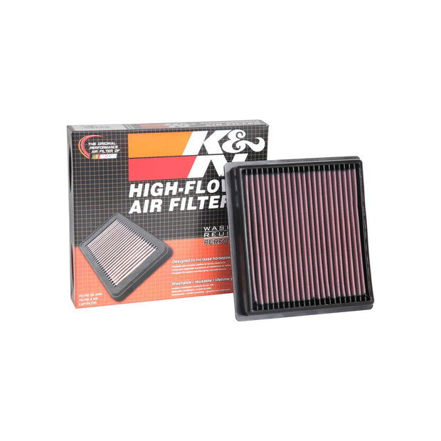 K&N® washable, reusable High-Flow Air Filters™ feature a state-of-the-art design of layered, oiled cotton media engineered to improve airflow and capture contaminants, and are designed to provide an increase in horsepower. Each performance air filter is reusable, engineered to last for the entire lifespan of your vehicle, and backed by K&N's 10-Year/Million Mile Limited Warranty. K&N drop-in replacement filters are designed to install easily into your factory air box. Upgrade today and start enjoying superior airflow and superior performance from K&N's most popular product!