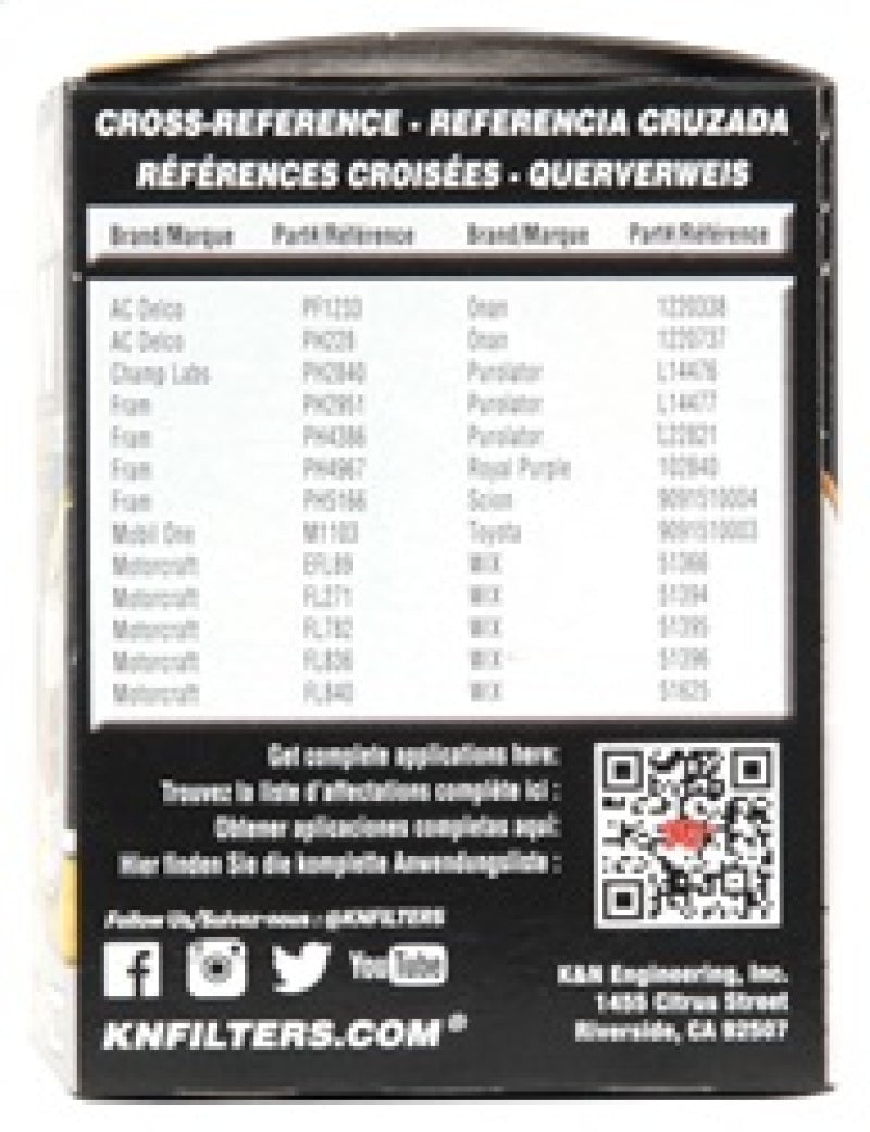 K&N premium oil filters are meticulously engineered to offer outstanding filtration and engine protection. Designed to operate with all synthetic, conventional, and blended motor oils, K&N's pleated synthetic-blend filtration media helps to shield your engine from contaminants and ensure a consistent flow of oil. The heavy-duty canister is engineered to be exceptionally durable, and a one-inch welded hex nut can be used for quick and easy filter removal. Each filter is specifically designed to withstand the service intervals recommended by vehicle manufacturers, and is protected by the K&N 1-Year Limited Warranty.